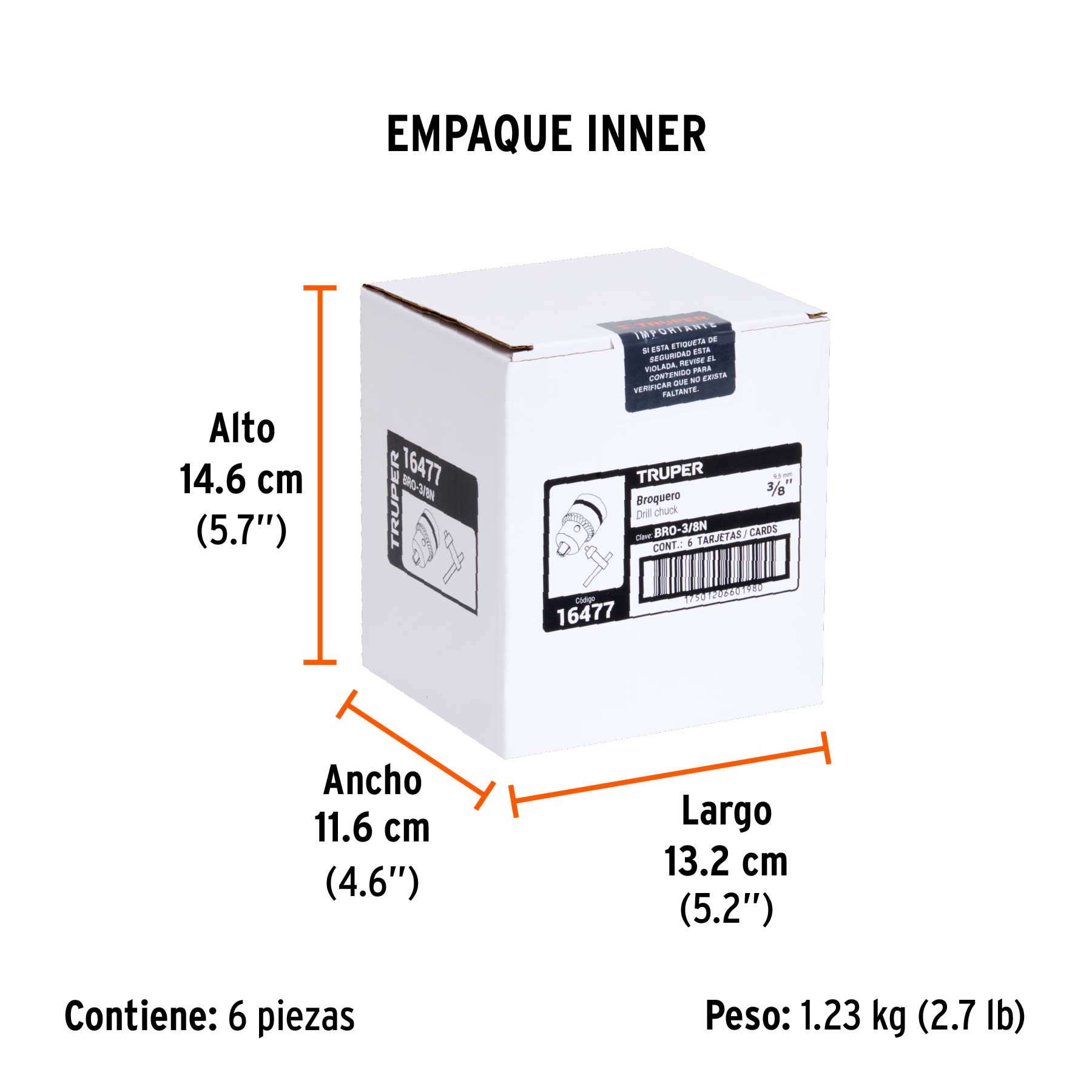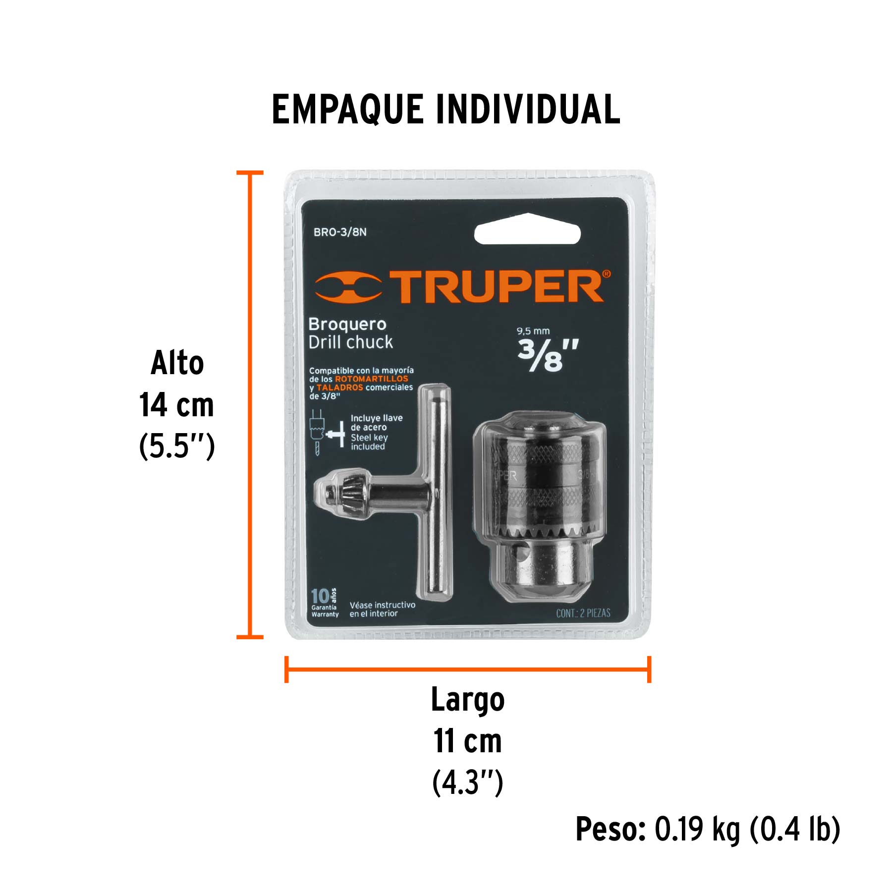 Broquero 3/8" con llave, cuerpo moleteado, TRUPER