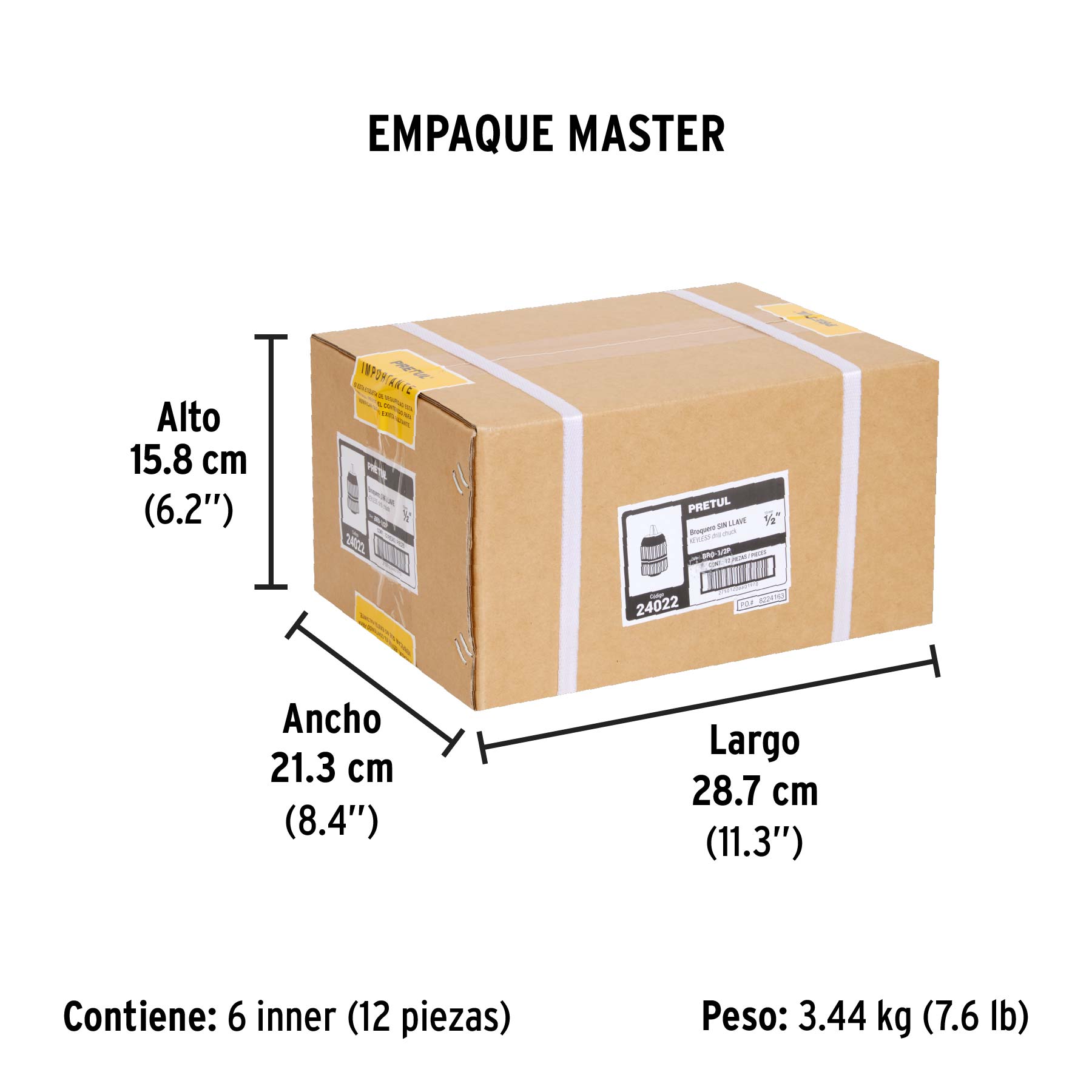 Broquero 1/2" sin llave, para máquinas inalámbricas, PRETUL