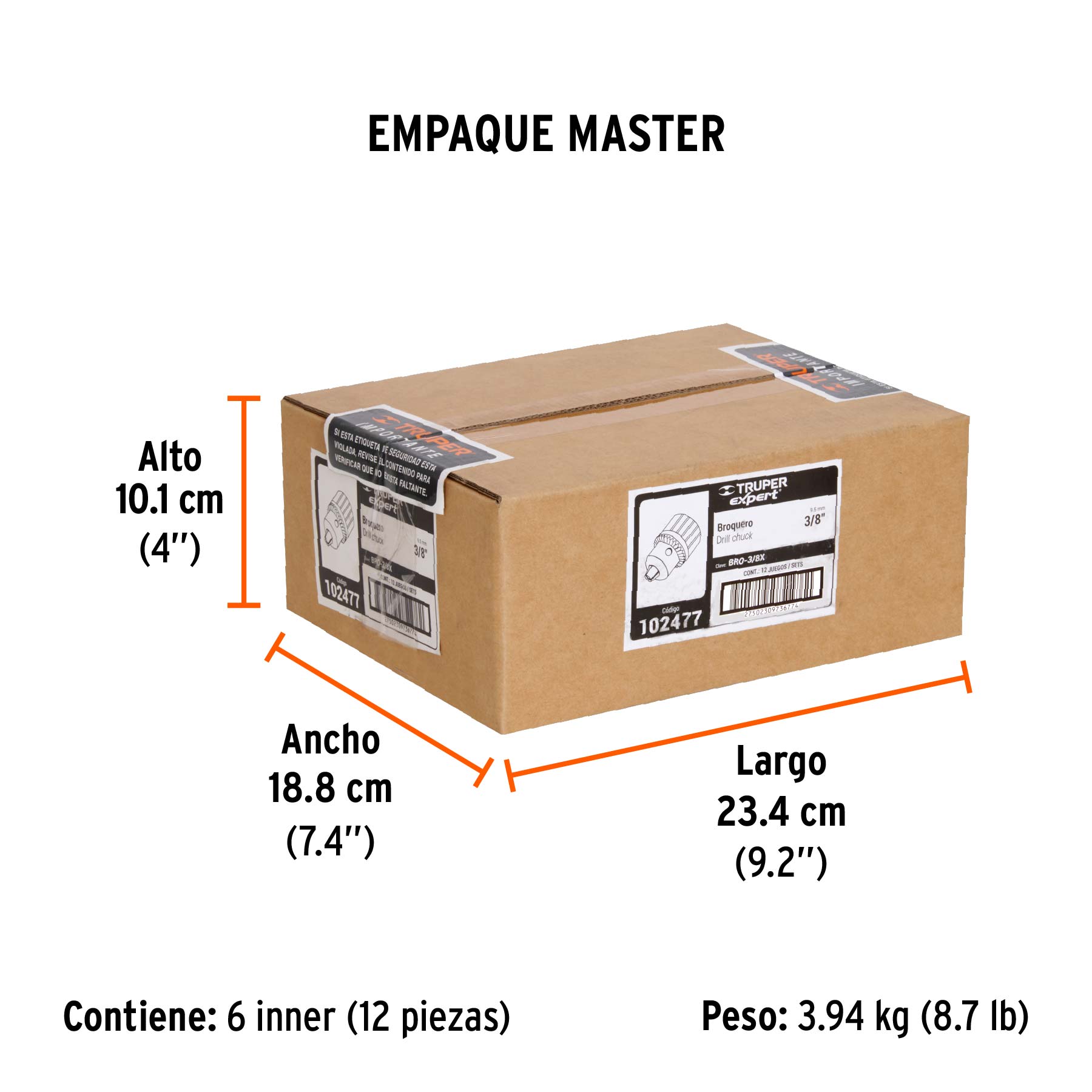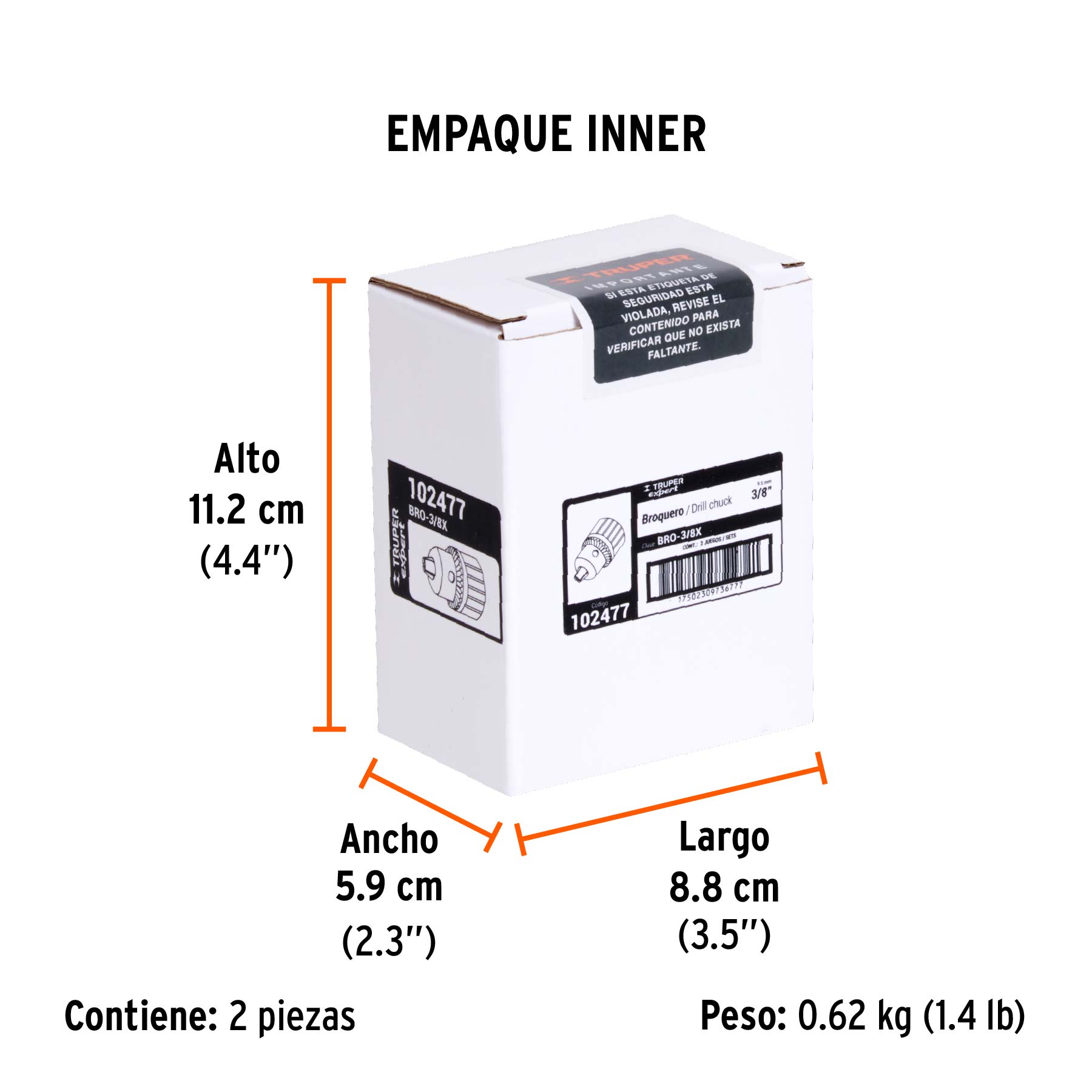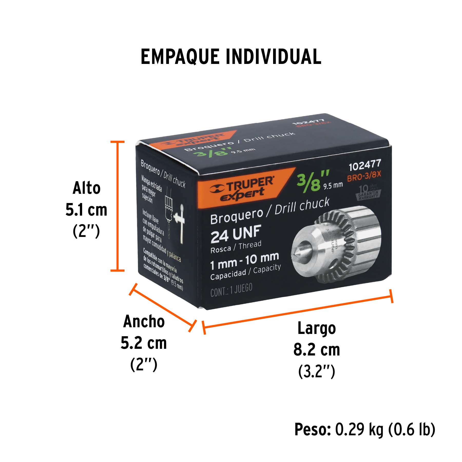 Broquero 3/8" con llave, cuerpo estriado, TRUPER EXPERT