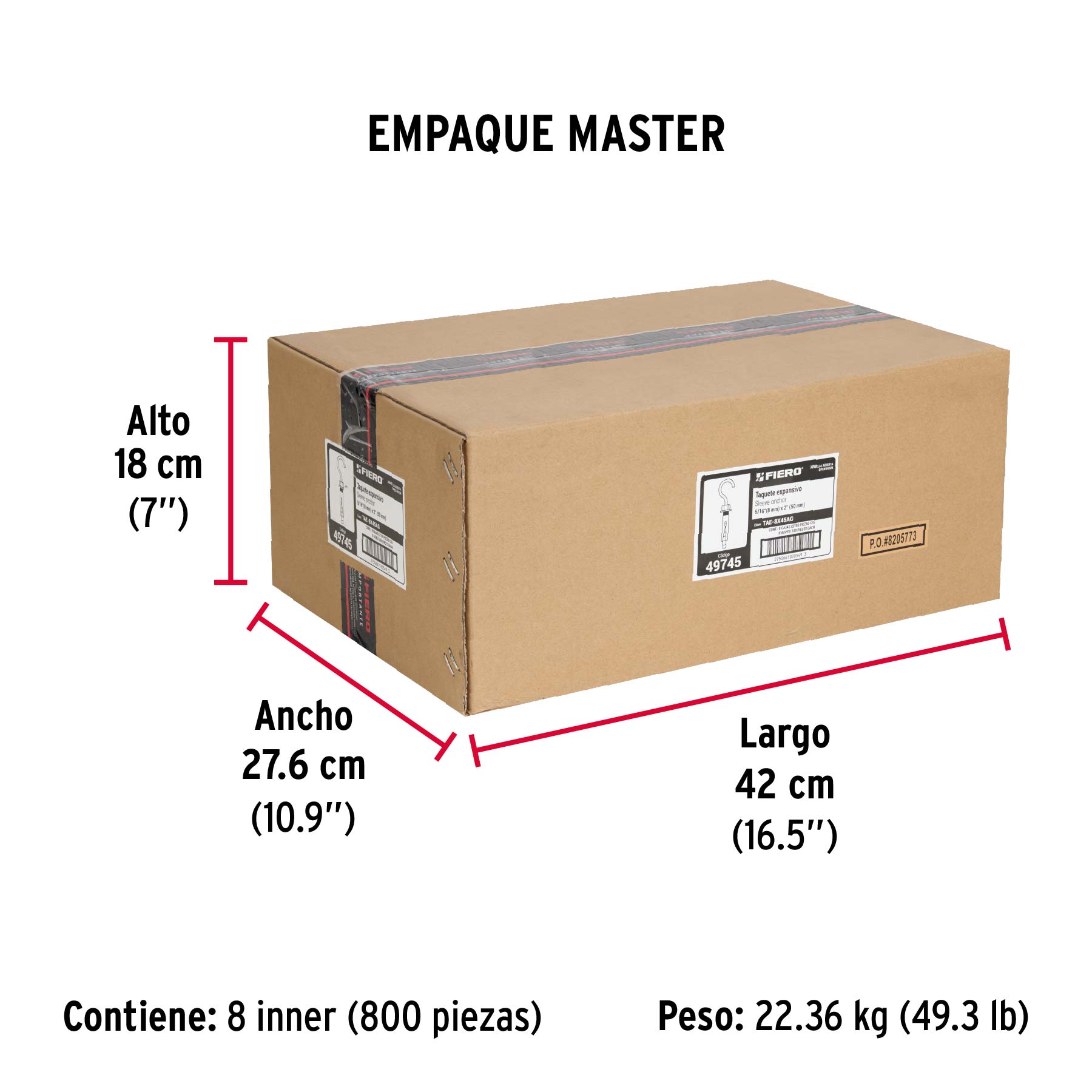 Taquete (diámetro x largo) | 5/16" (8 mm) x 2" (50 mm) |