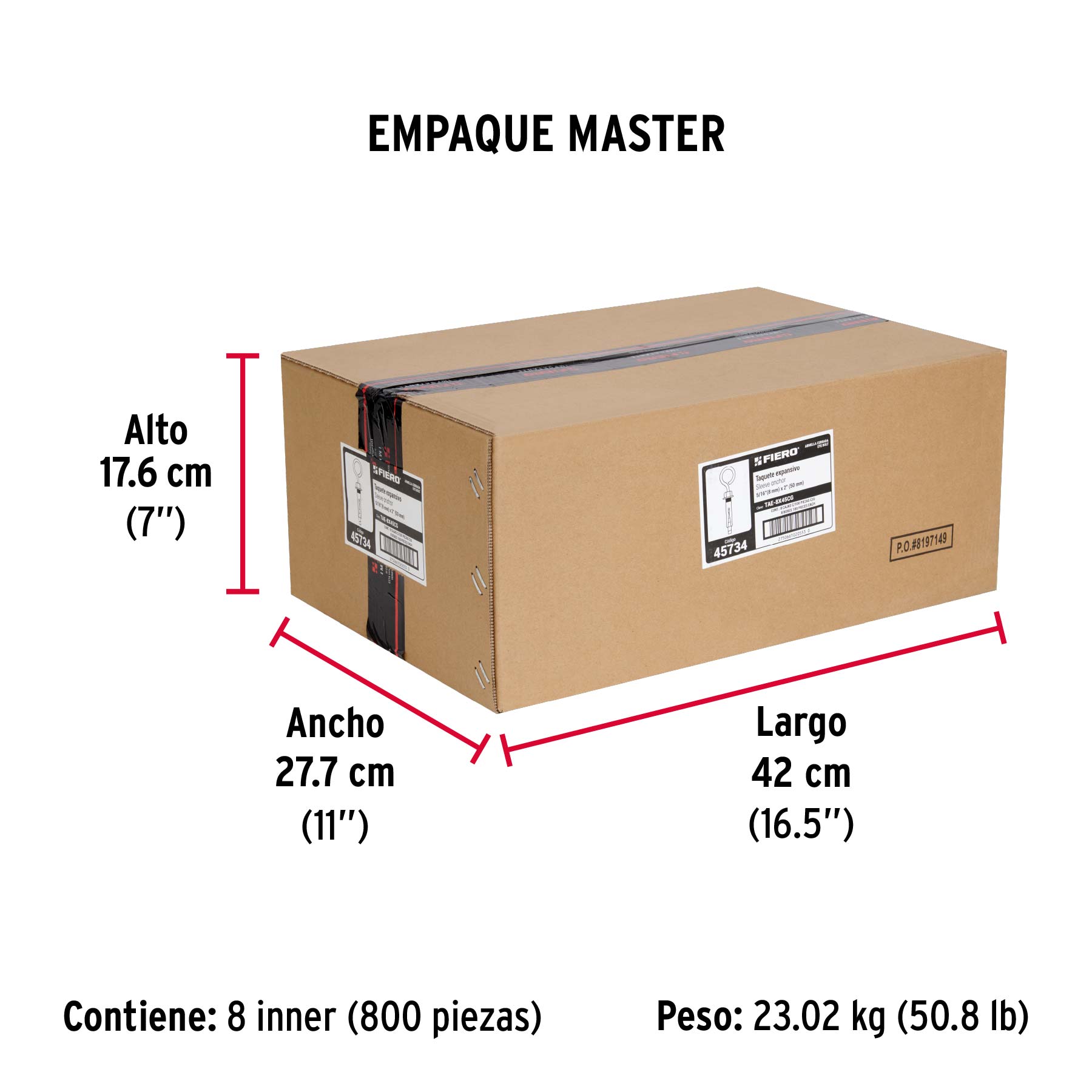 Taquete (diámetro x largo) | 5/16" (8 mm) x 2" (50 mm) |