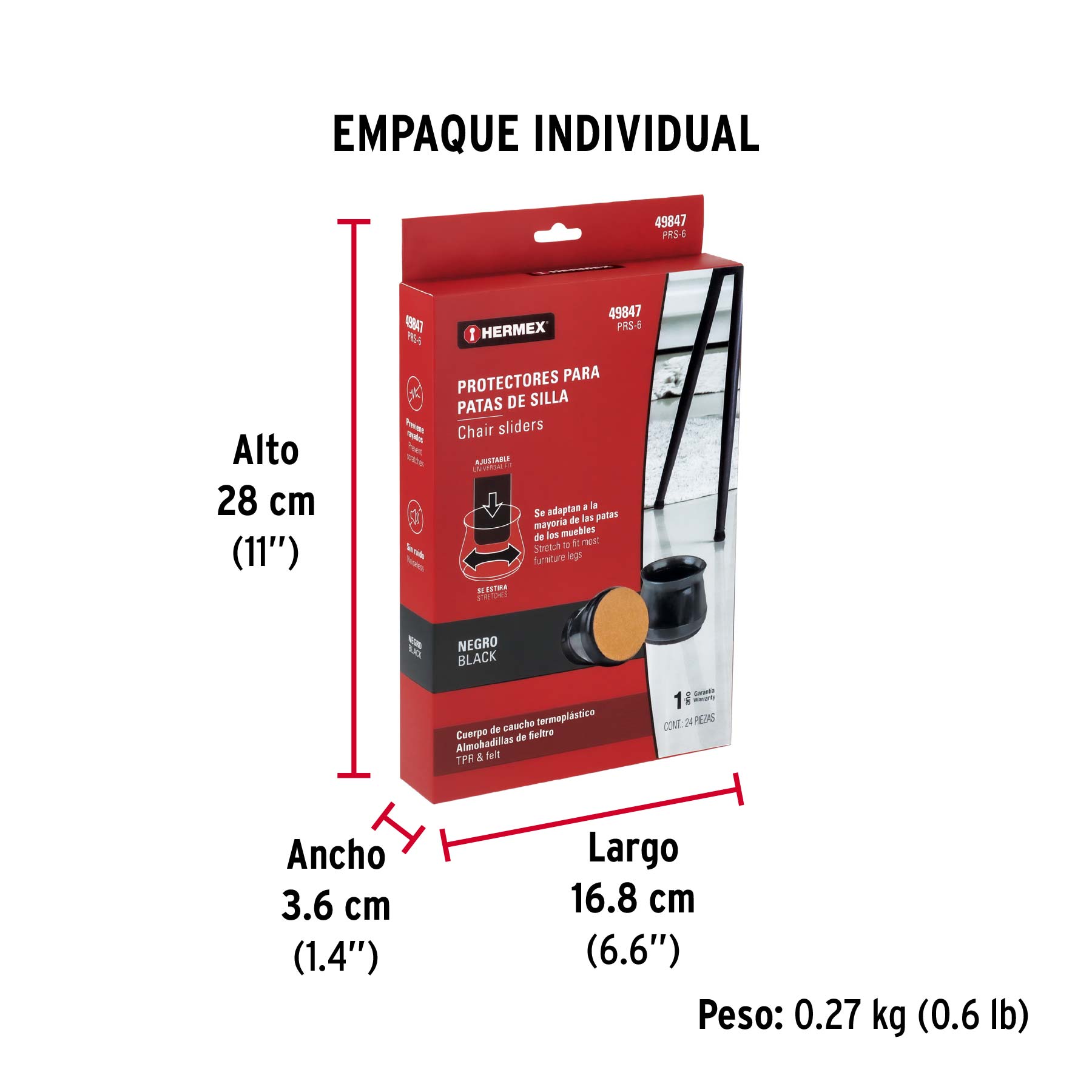 Ajustable, se estira para adaptarse a la mayoría de las patas de los muebles