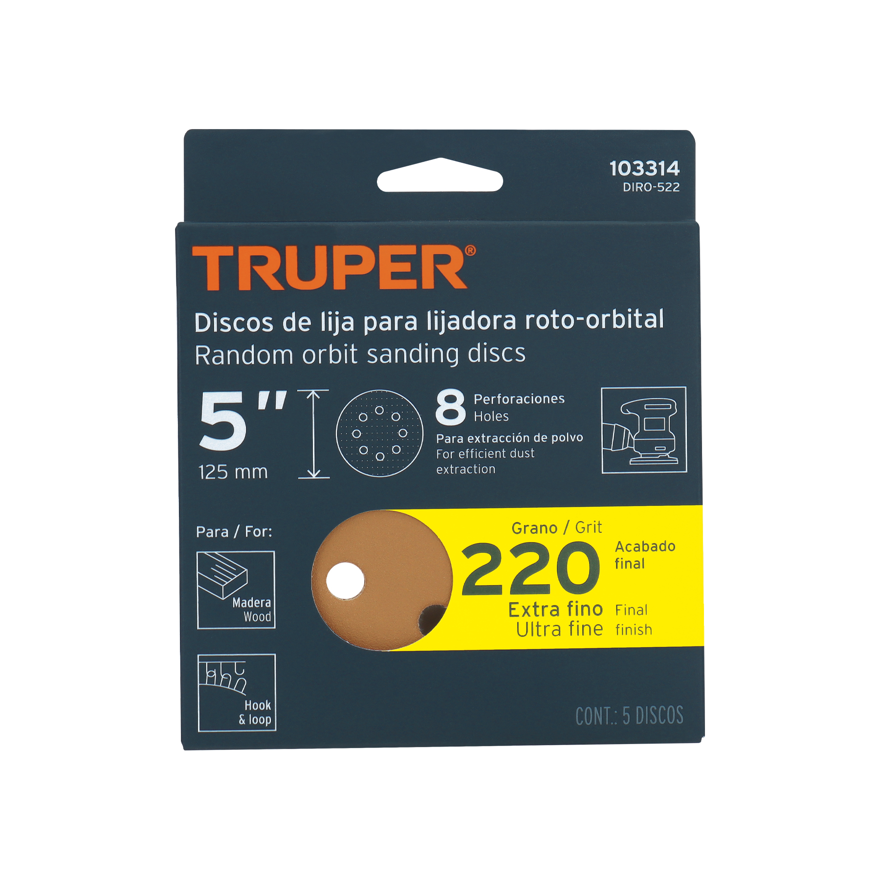Paquete con 5 discos de lija 5" grano 220, 8 perforaciones