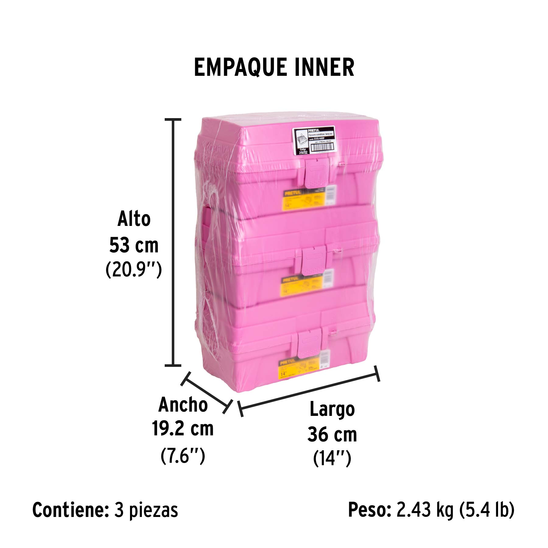 Caja cosmetiquera 14", doble bandeja, rosa, PRETUL
