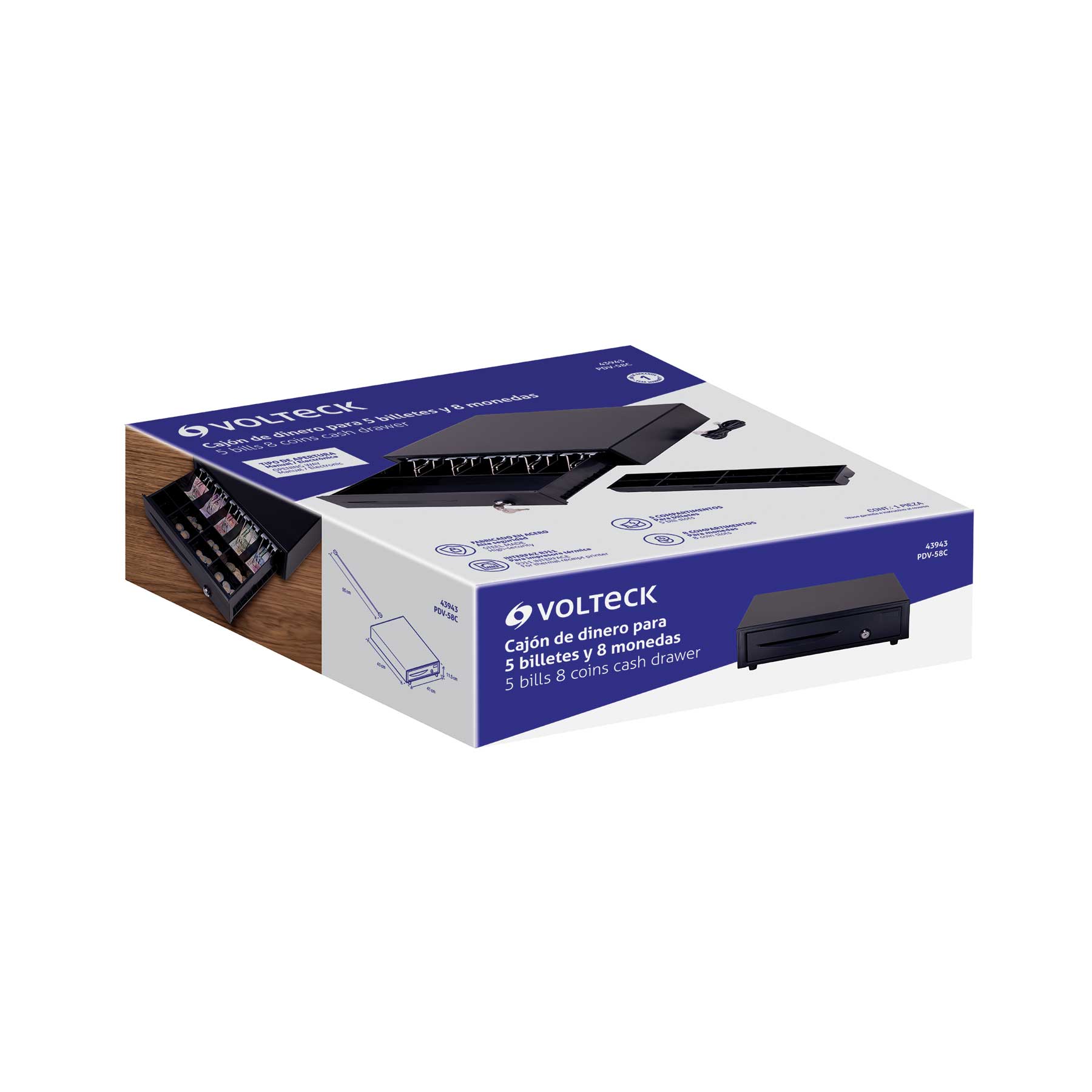 Cajón de dinero para 5 billetes y 8 monedas, VOLTECK