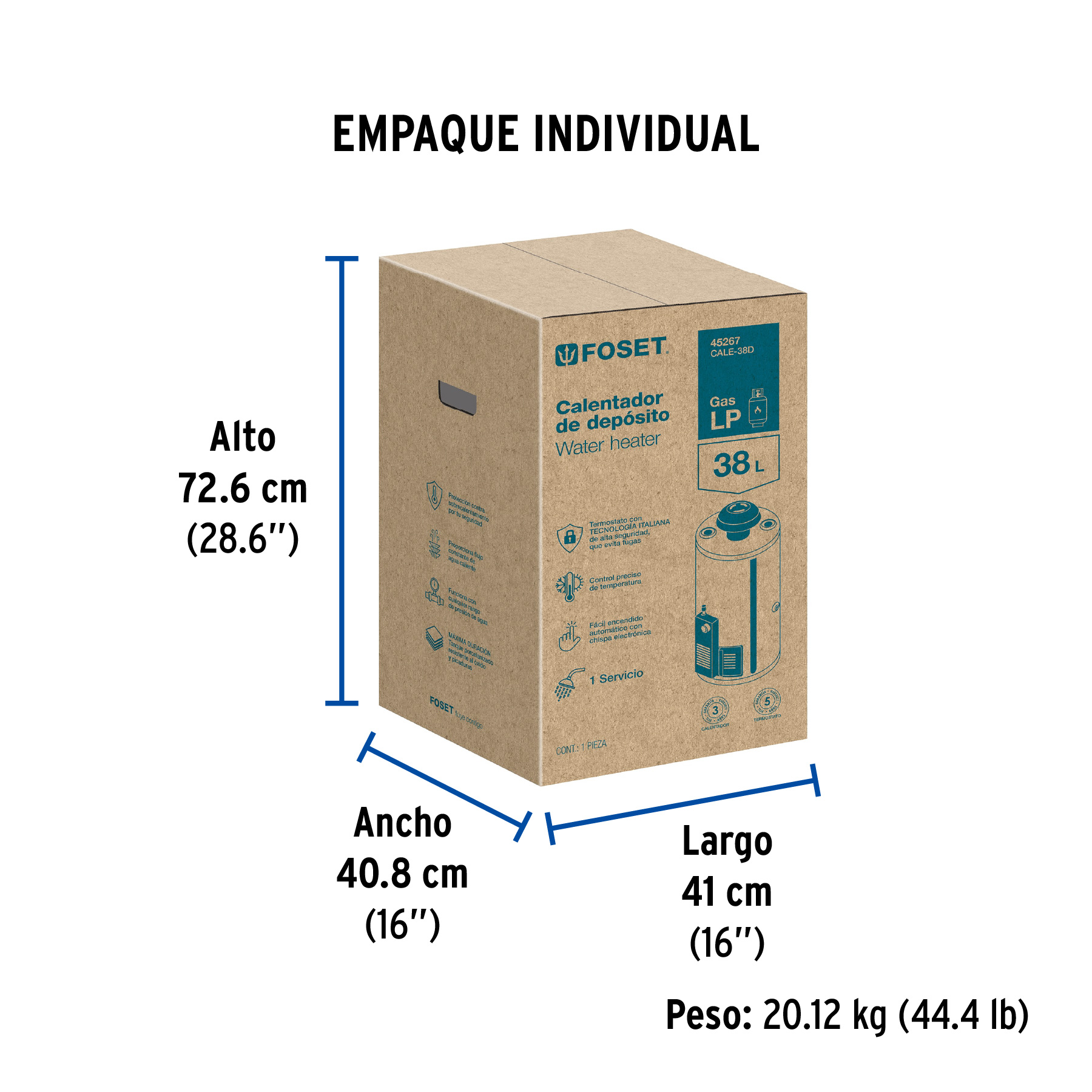 Calentador de depósito, 38L, 1 servicio, gas LP, FOSET