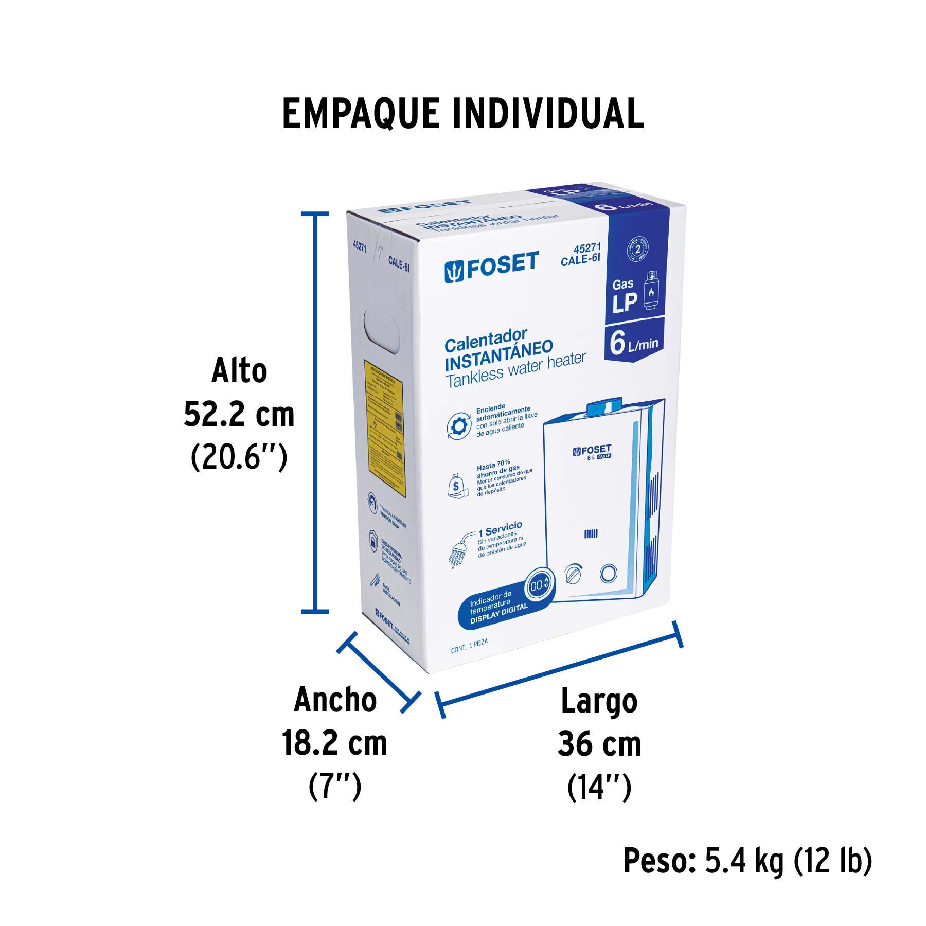Calentador instantáneo, 6L, 1 servicio, gas LP, FOSET