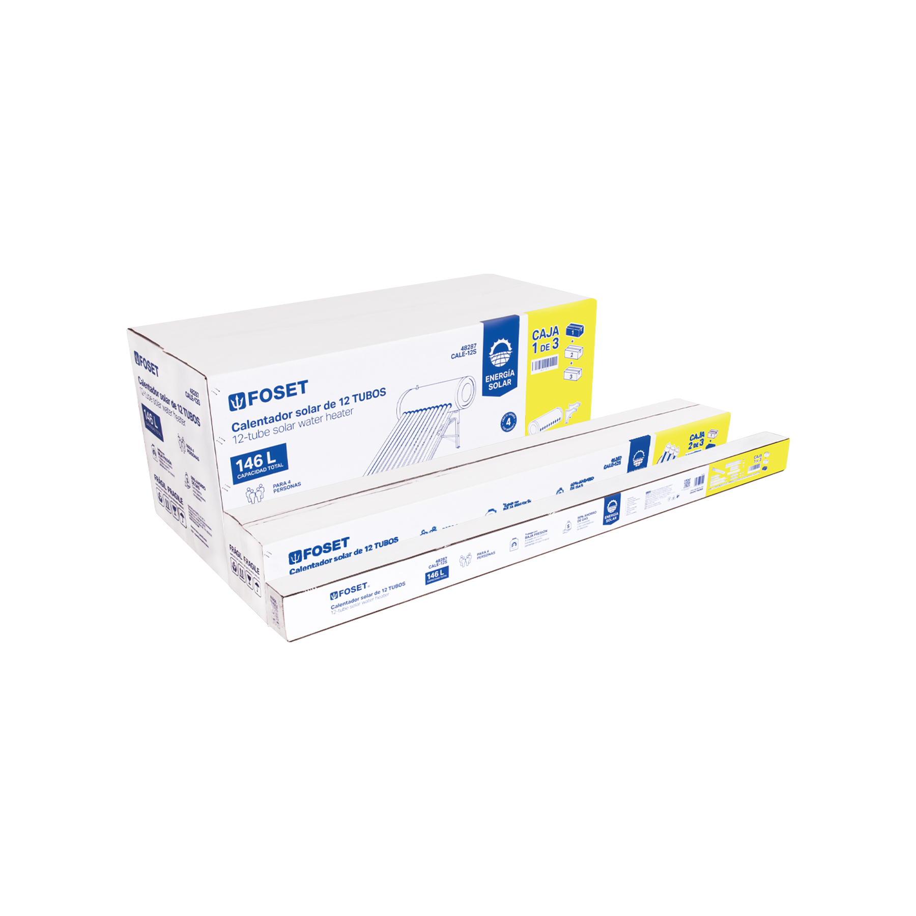 Calentador solar de agua, 12 tubos, 150L, 4 personas, FOSET