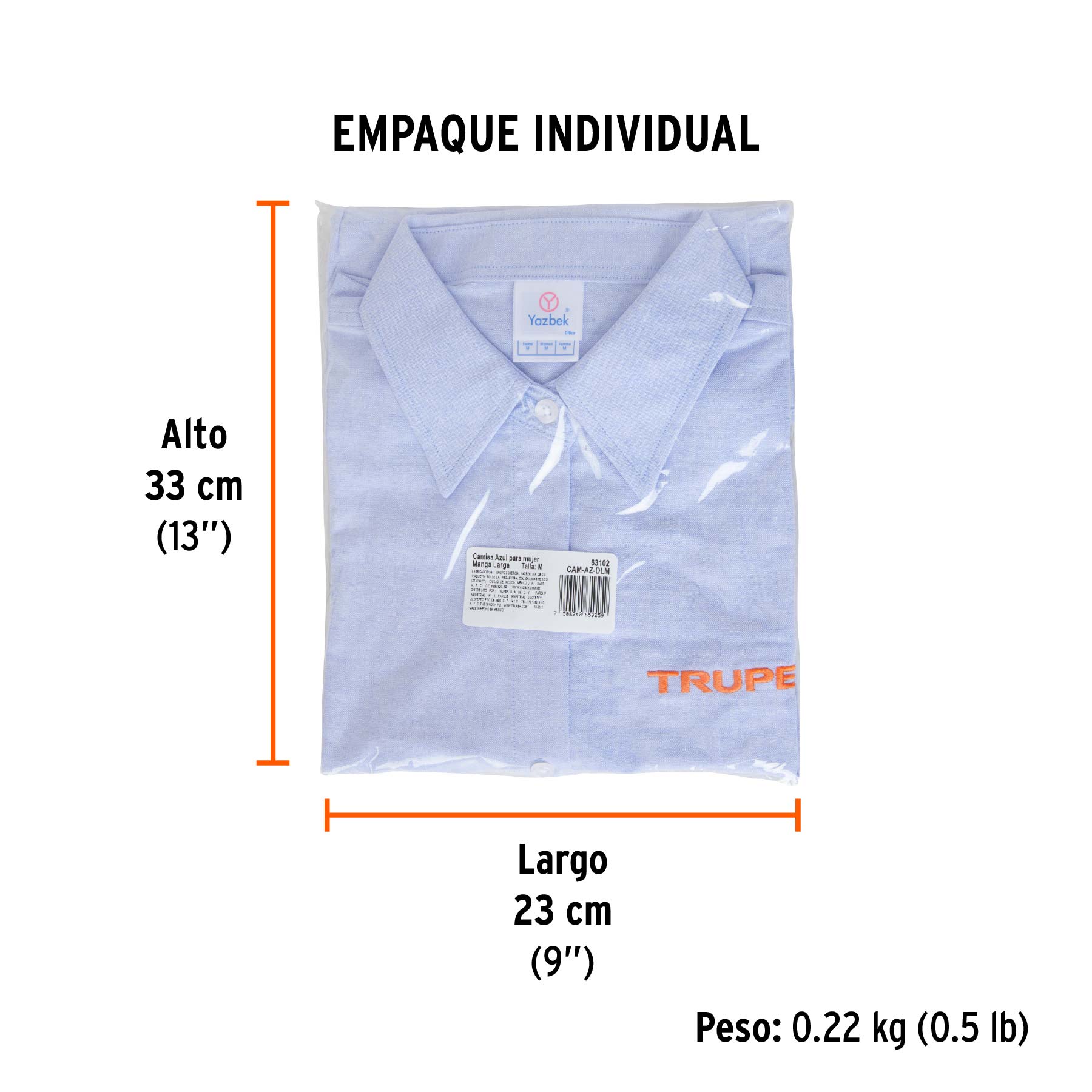 Camisa manga larga para mujer, azul, M, TRUPER