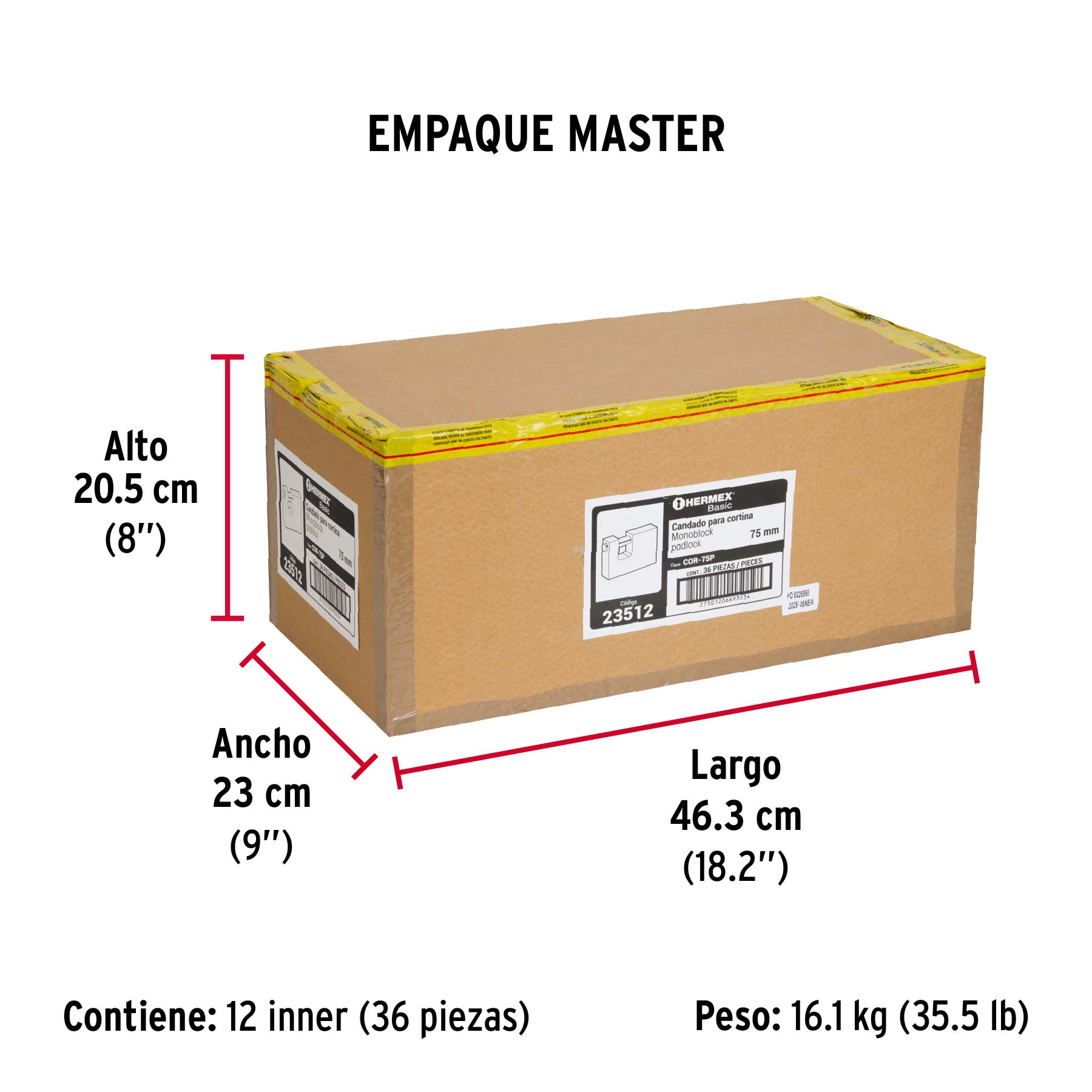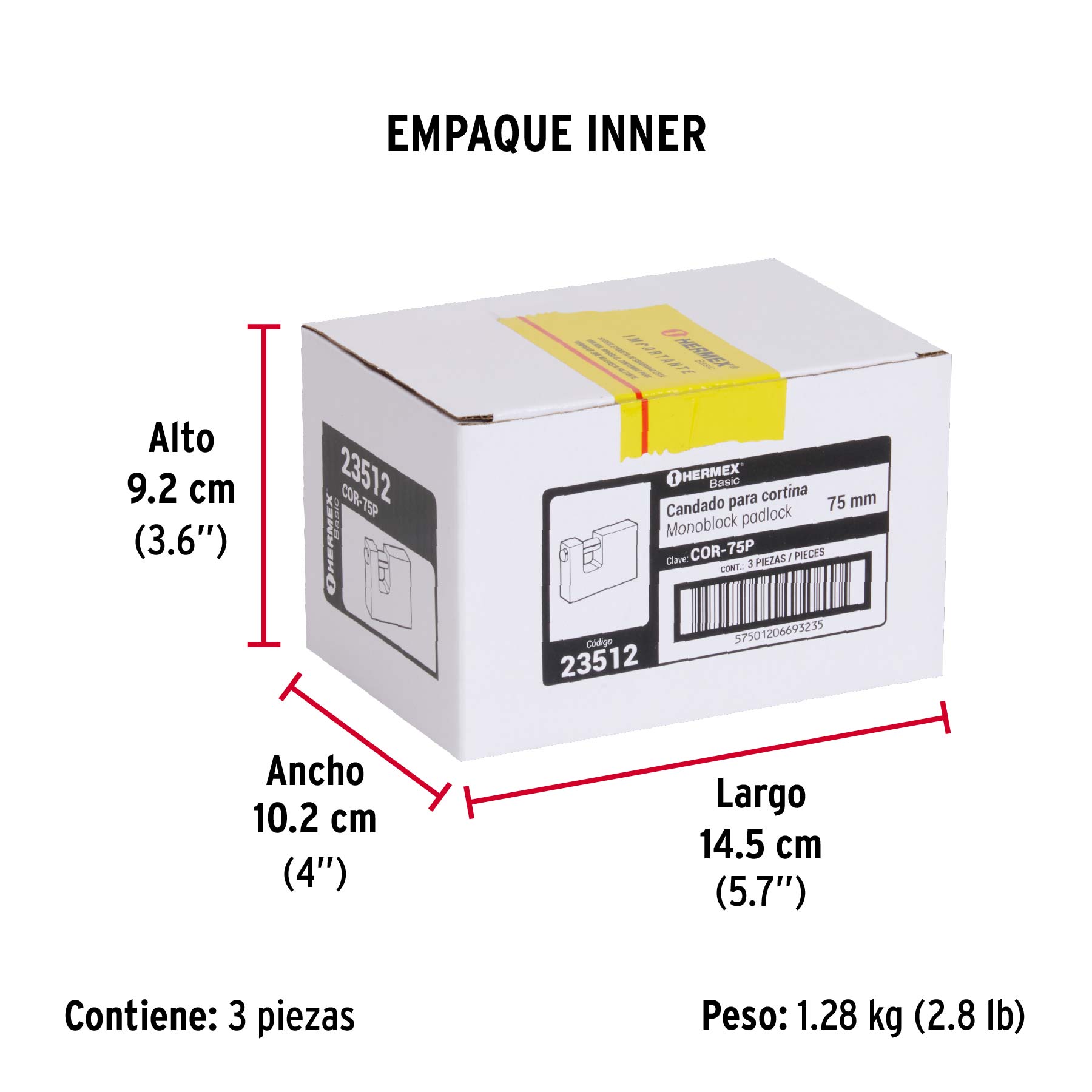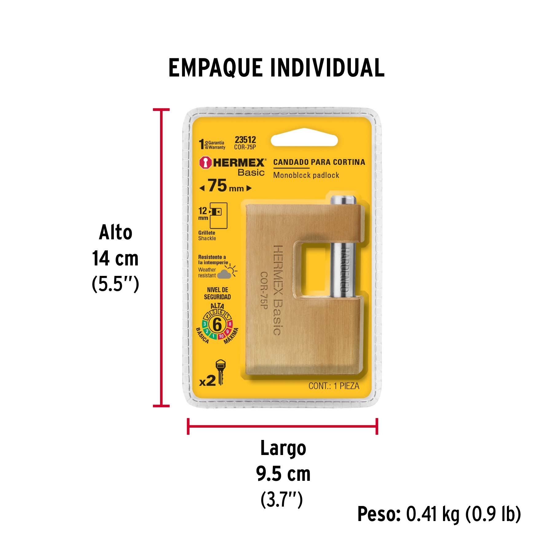 Candado antipalanca 75 mm cuerpo de latón, HERMEX BASIC