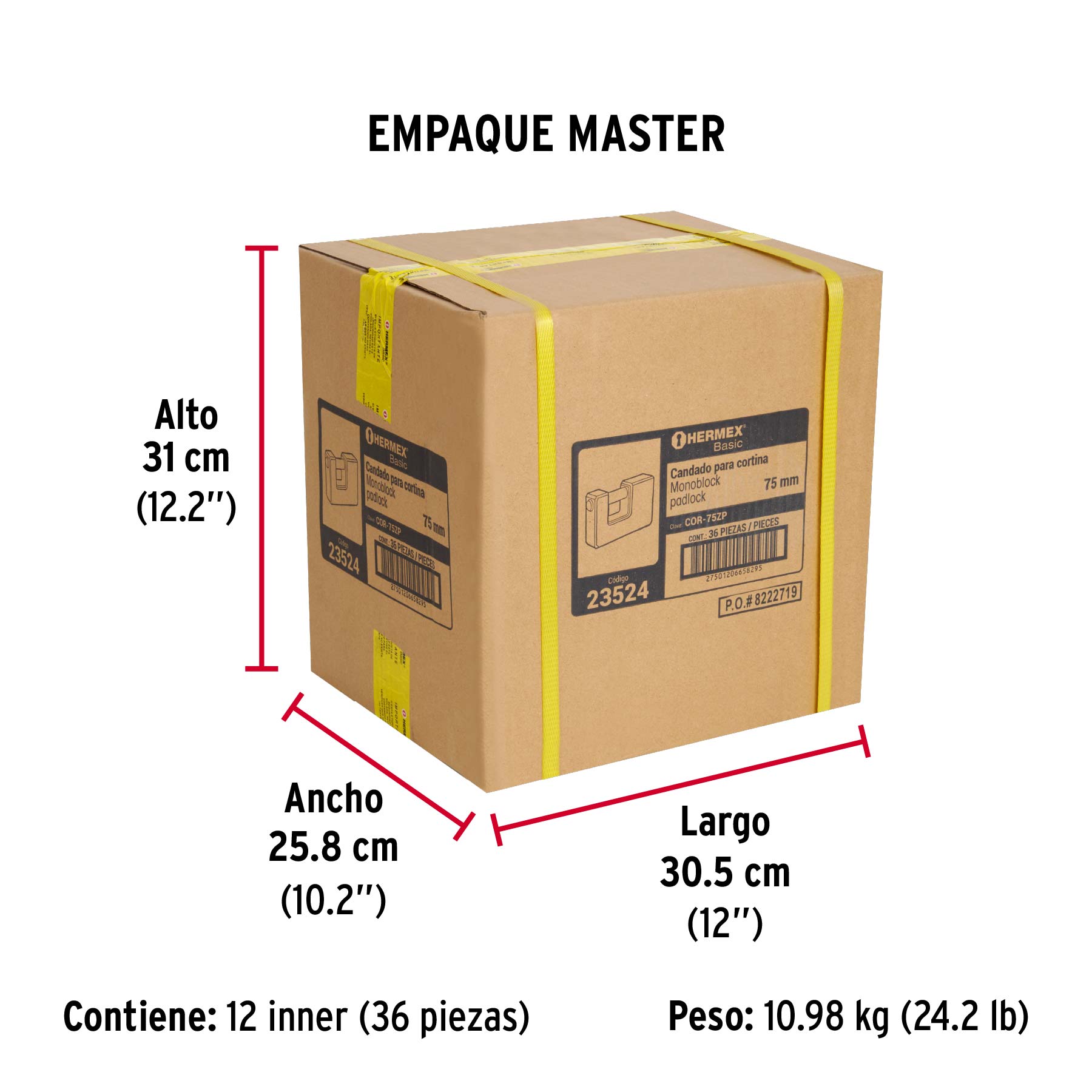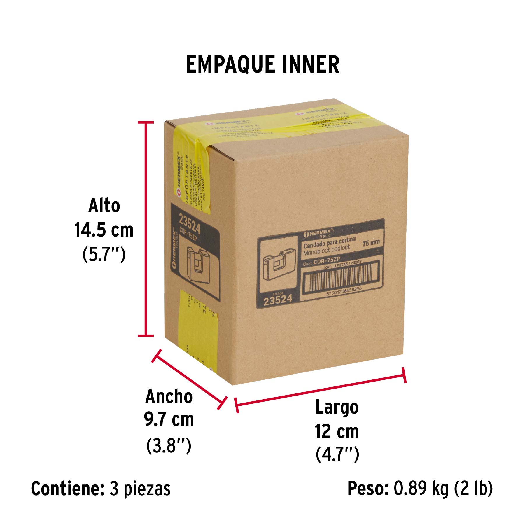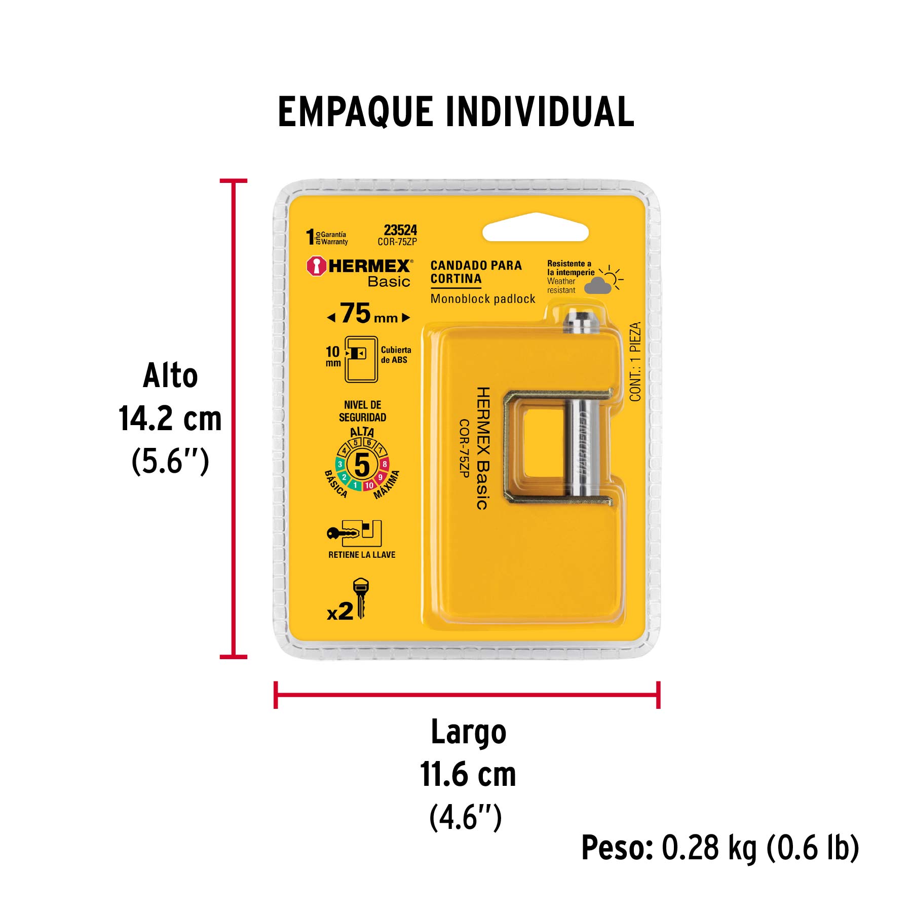Candado antipalanca 75 mm cuerpo metálico, HERMEX BASIC
