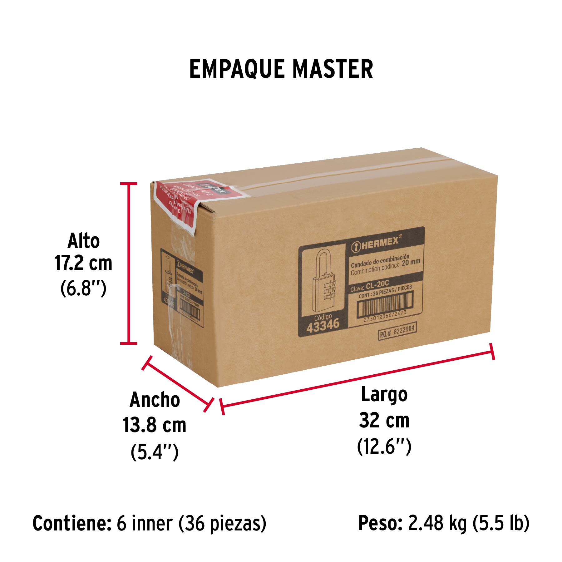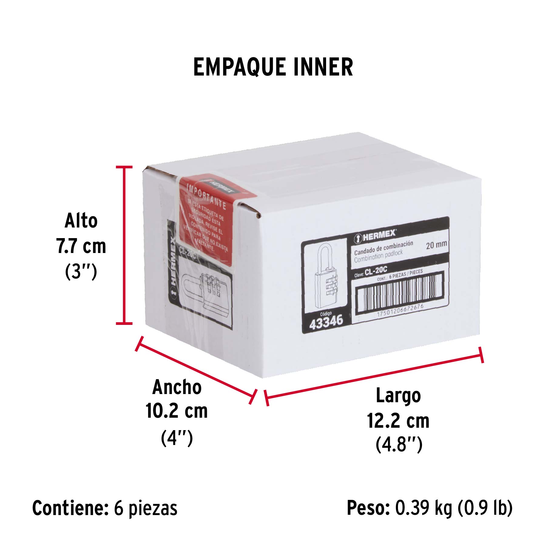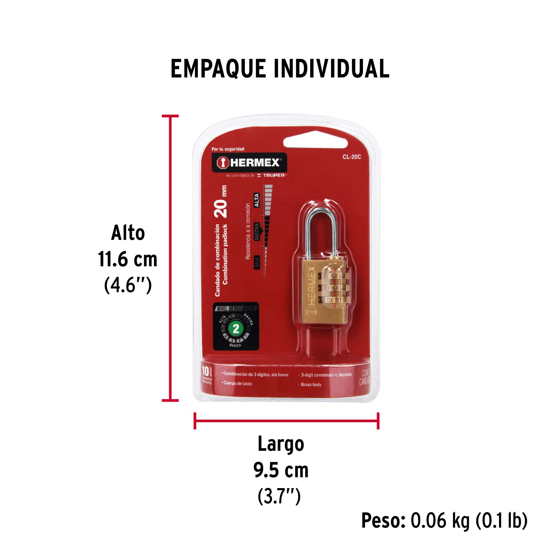 Candado de combinación 20 mm cuerpo de latón en blíster
