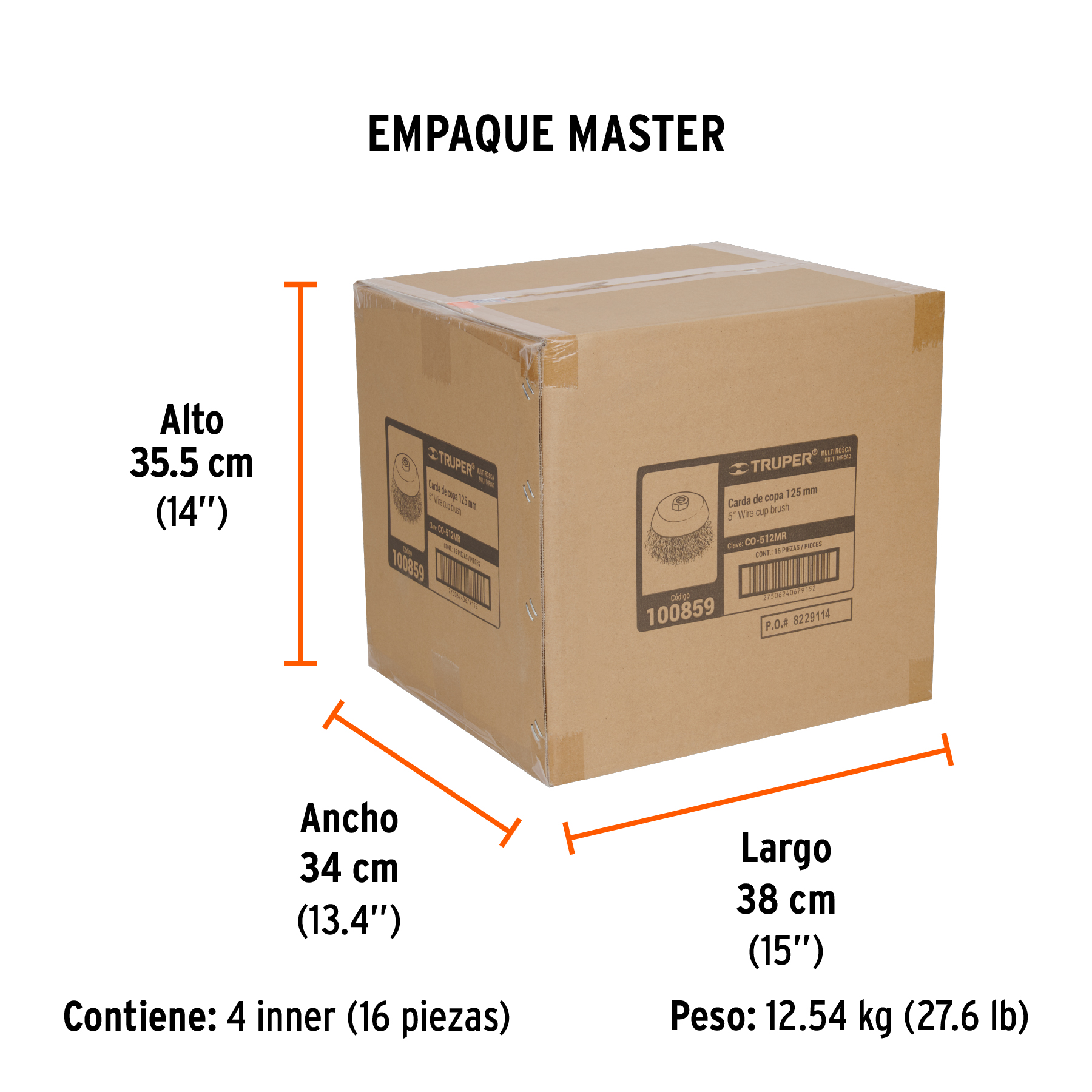 Carda copa 5" alambre ondulado fino, Multi-rosca, Truper