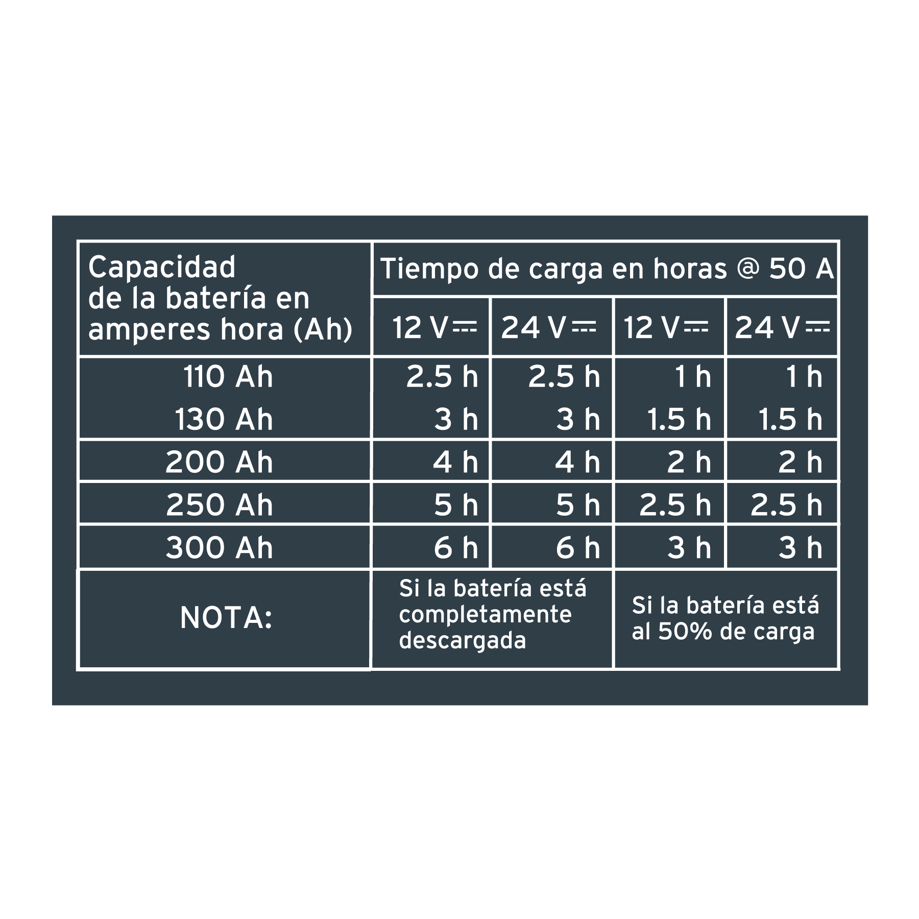 Ciclo de trabajo en arranque | 320 A intermitentes (3 segundos máximo encendido / 120 segundos mínimo apagado, máximo 5 ciclos) |
