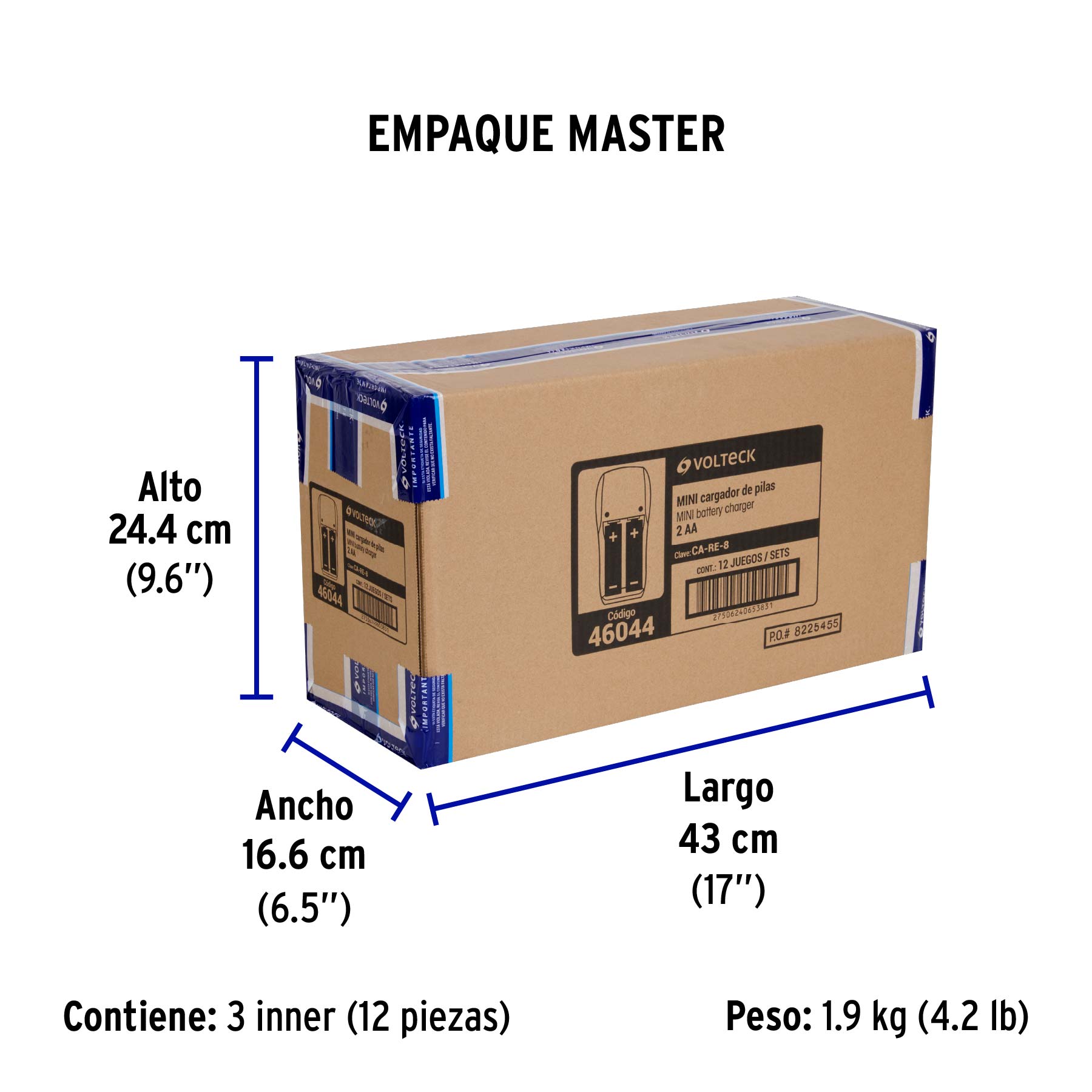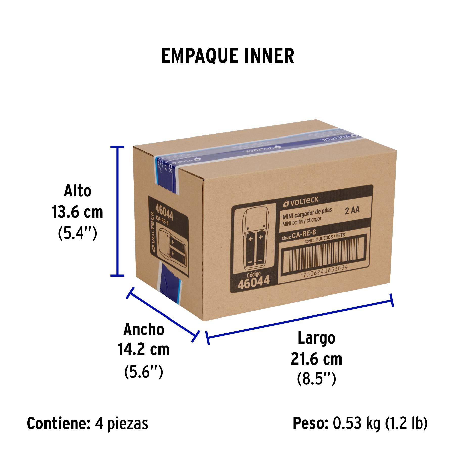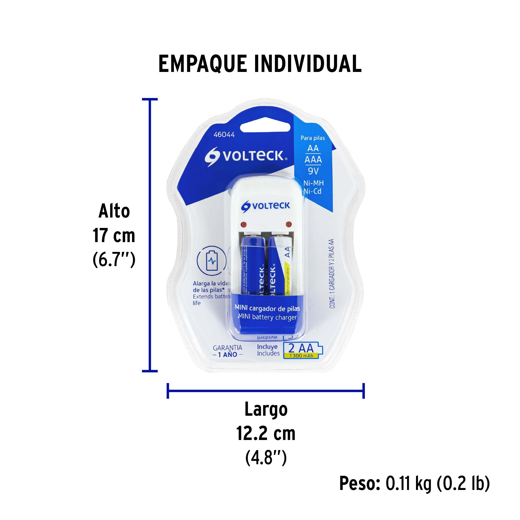 Cargador de pilas, AA, AAA y 9V, incluye 2 pilas AA, VOLTECK