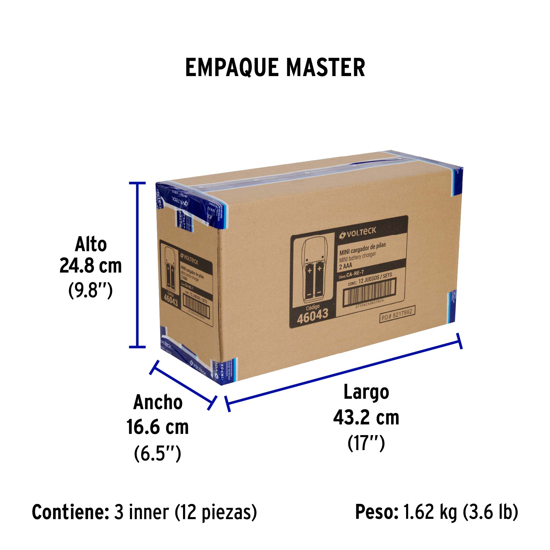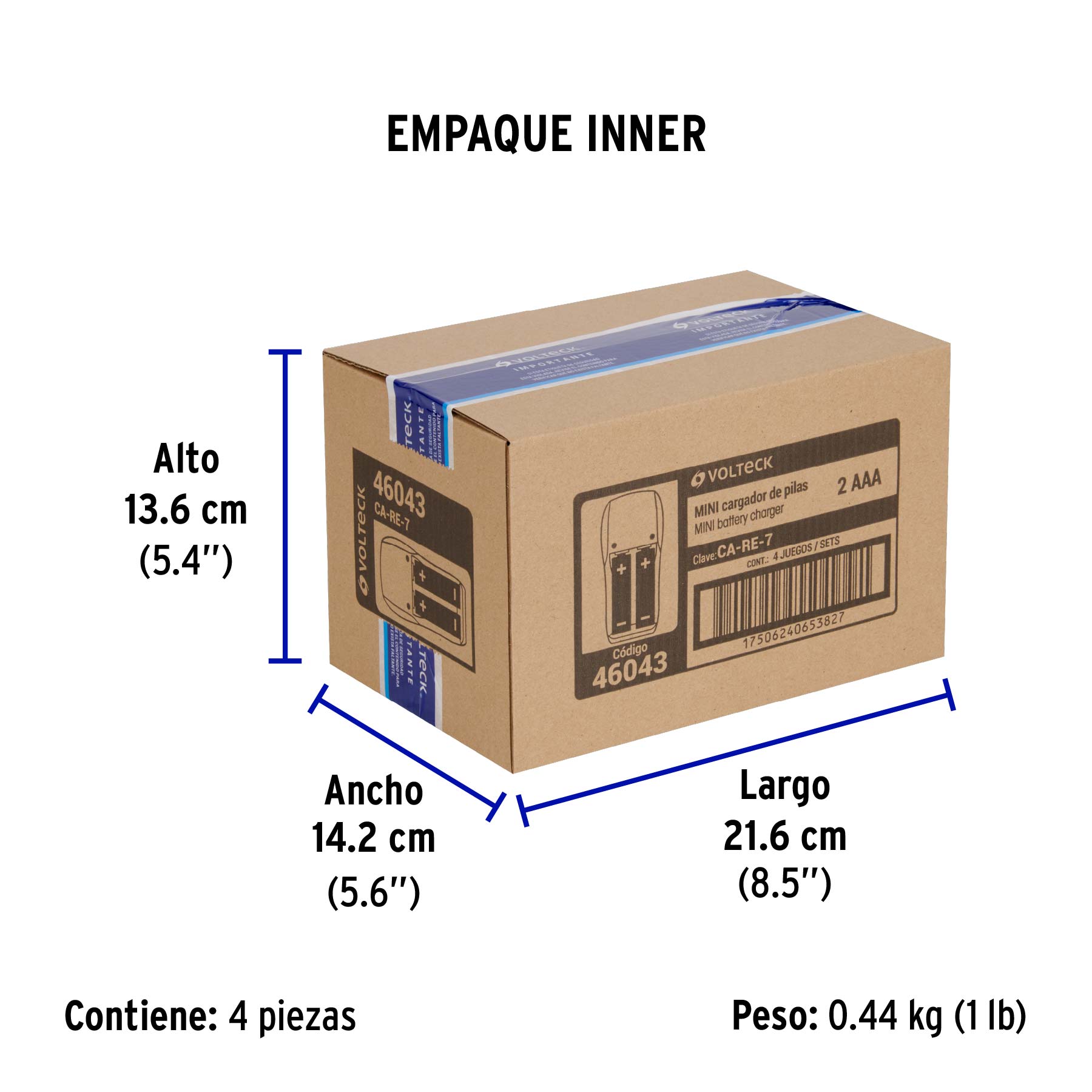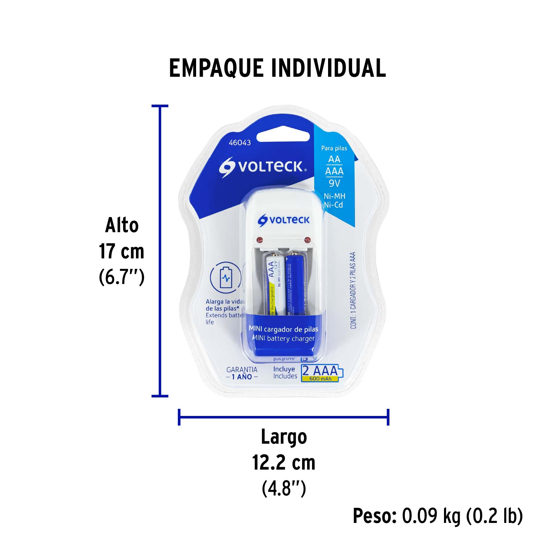 Cargador de pilas, AA, AAA y 9V incluye 2 pilas AAA, VOLTECK