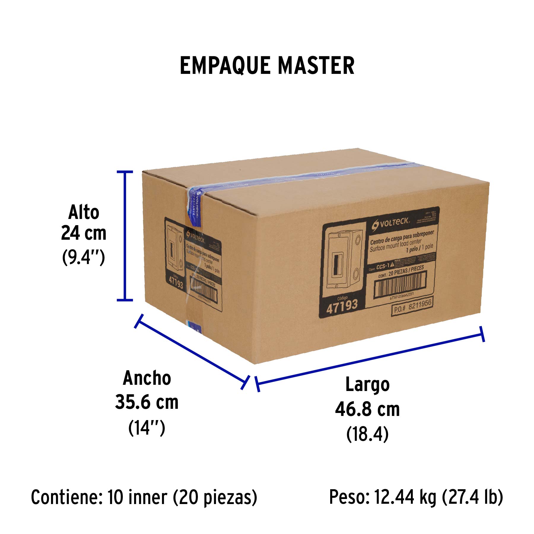 Centro de carga de sobreponer, 1 polo, VOLTECK