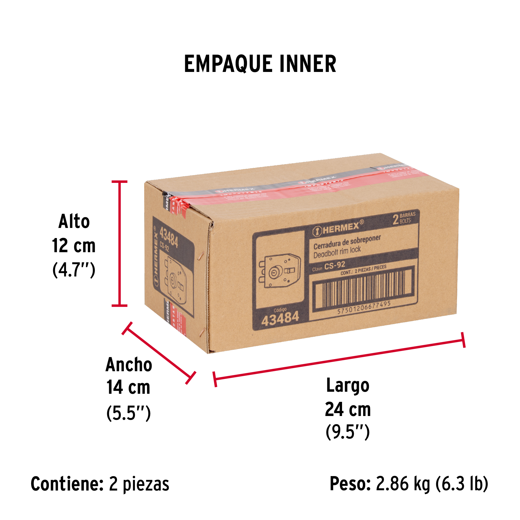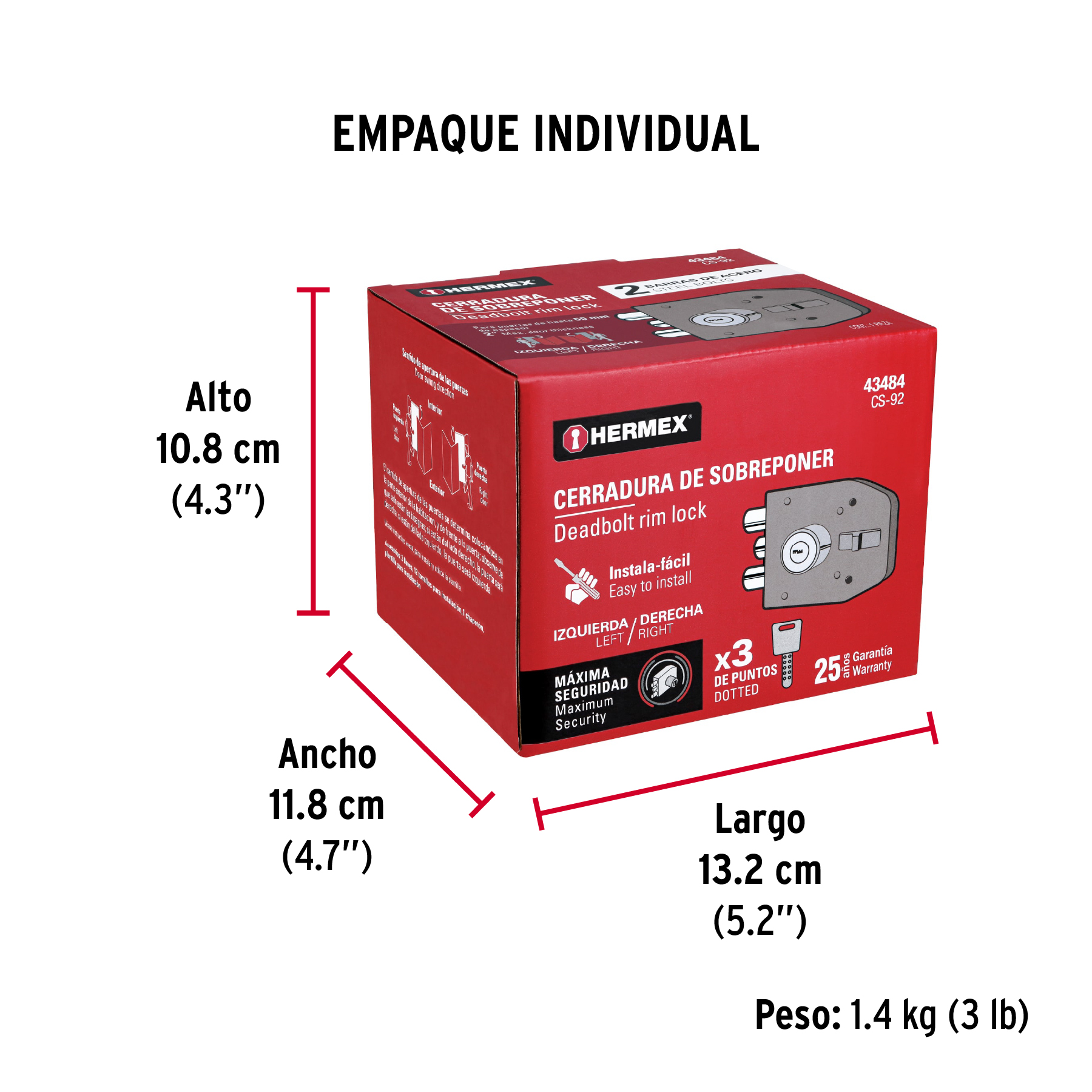 Cerradura sobreponer 2 barras instala-fácil, llave puntos