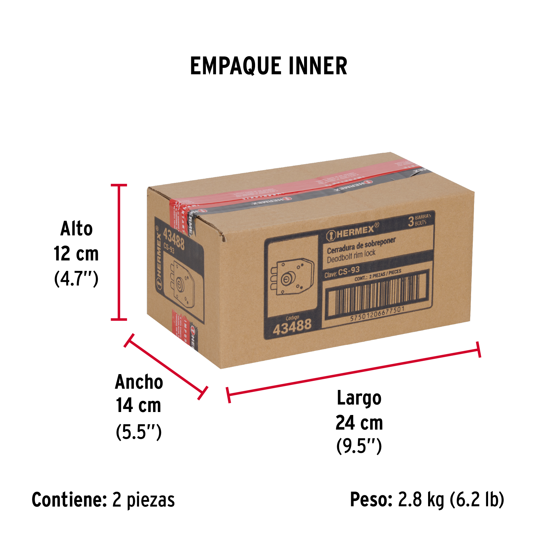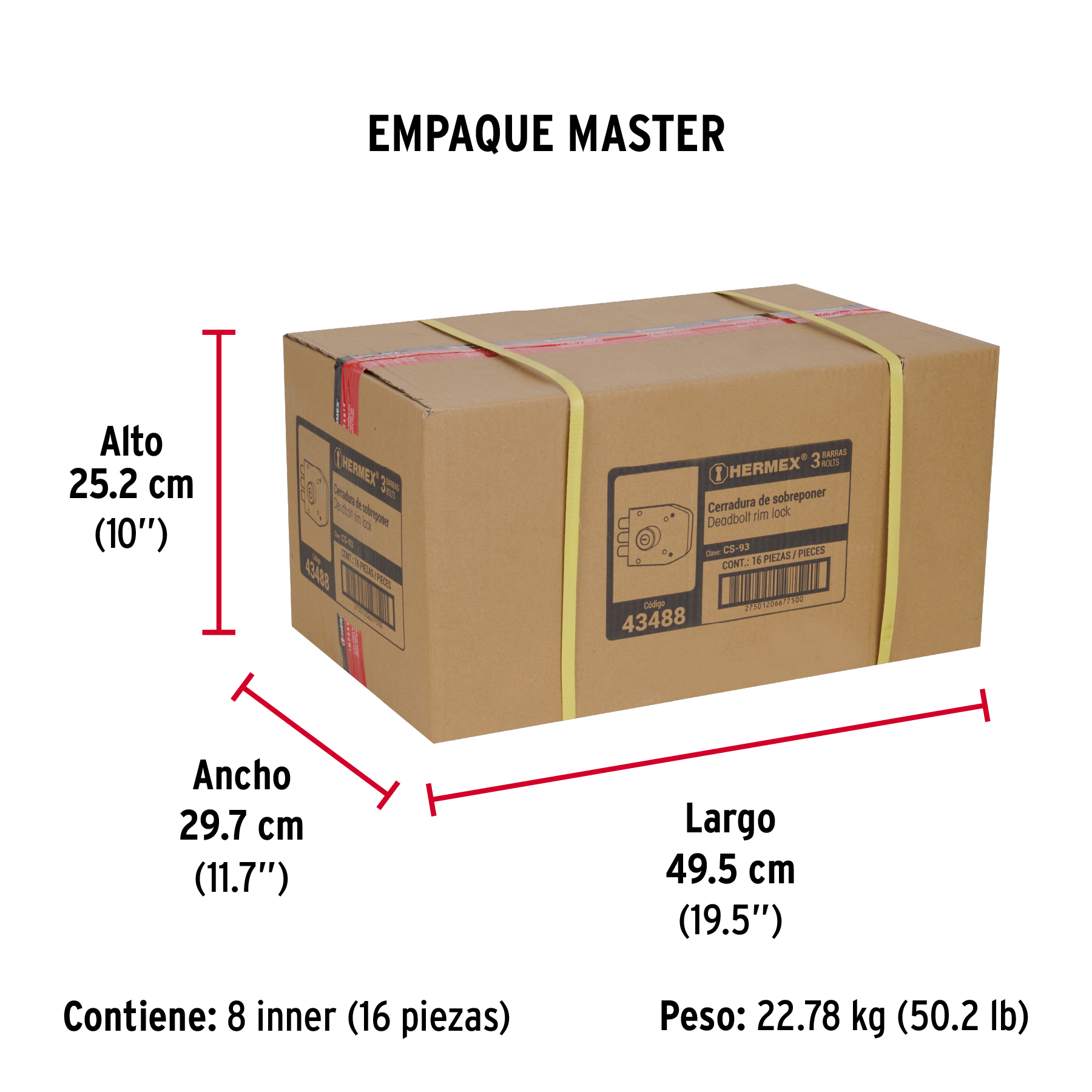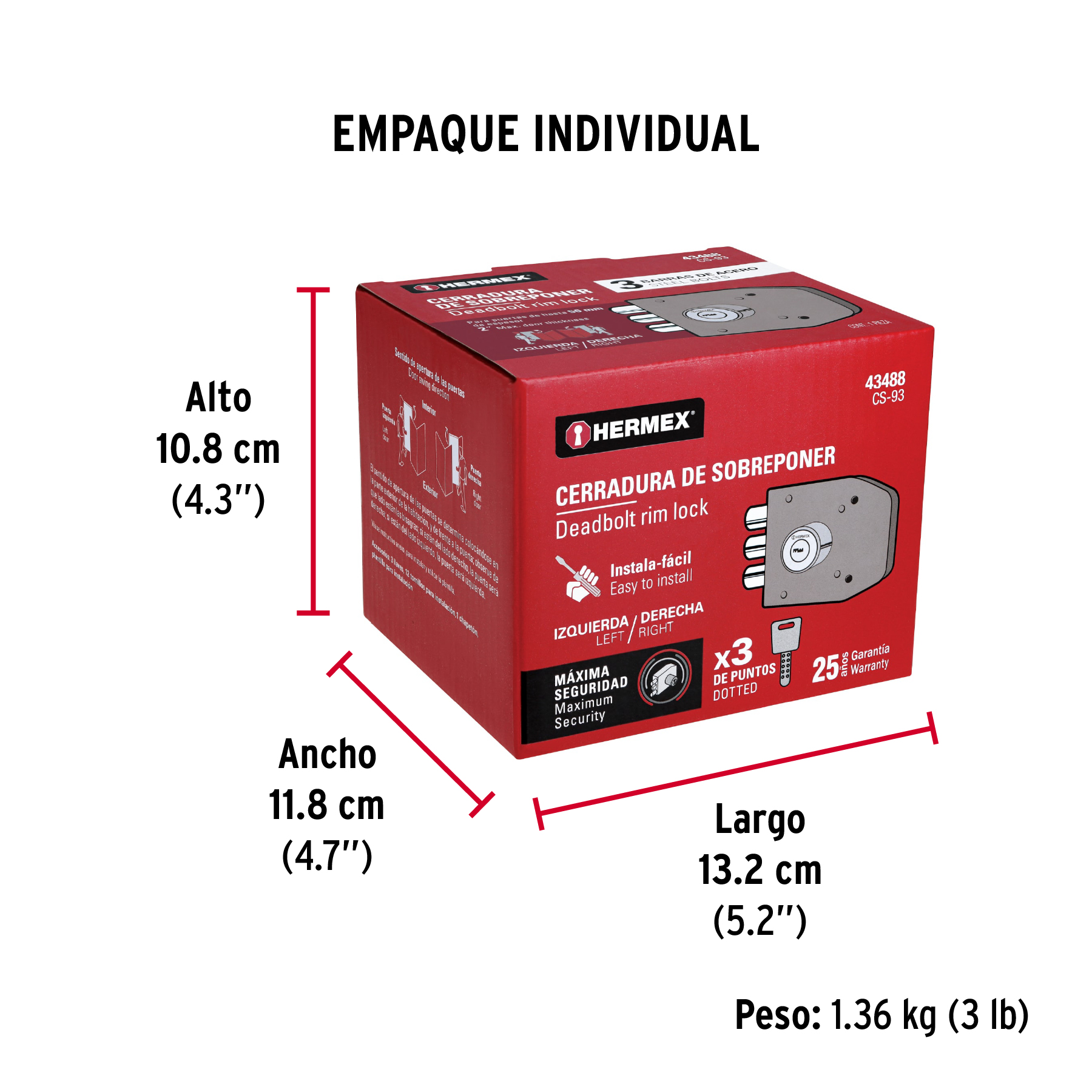 Cerradura sobreponer 3 barras instala-fácil, llave puntos