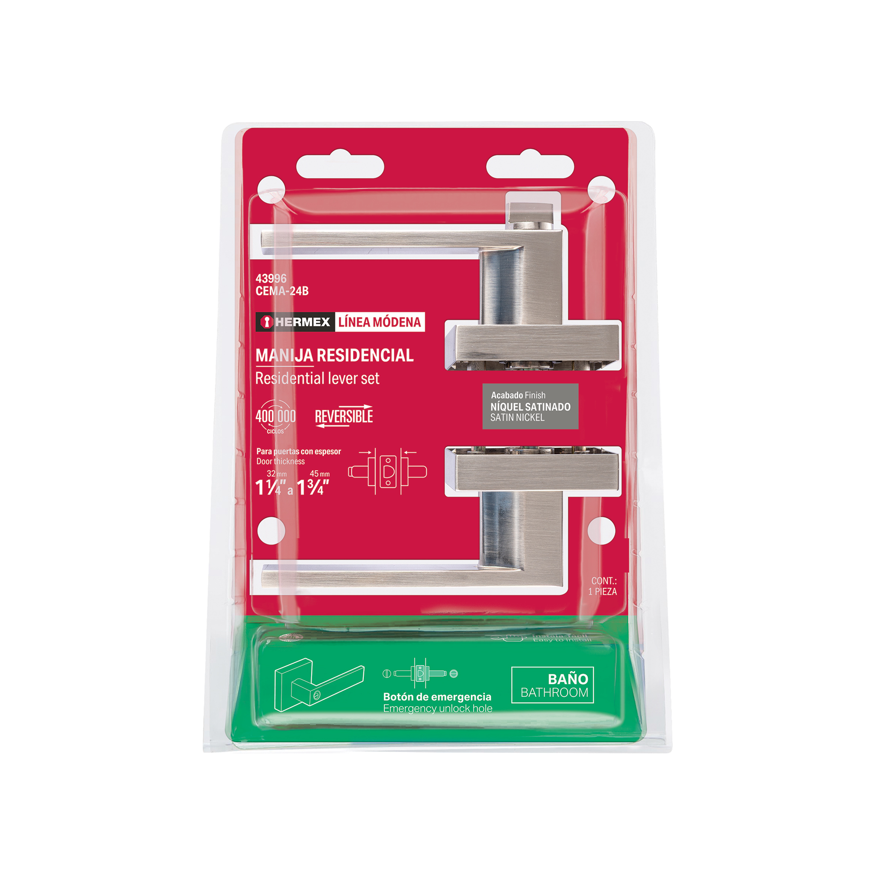 Cerradura manija "Módena" p/baño, níquel satinado, HERMEX