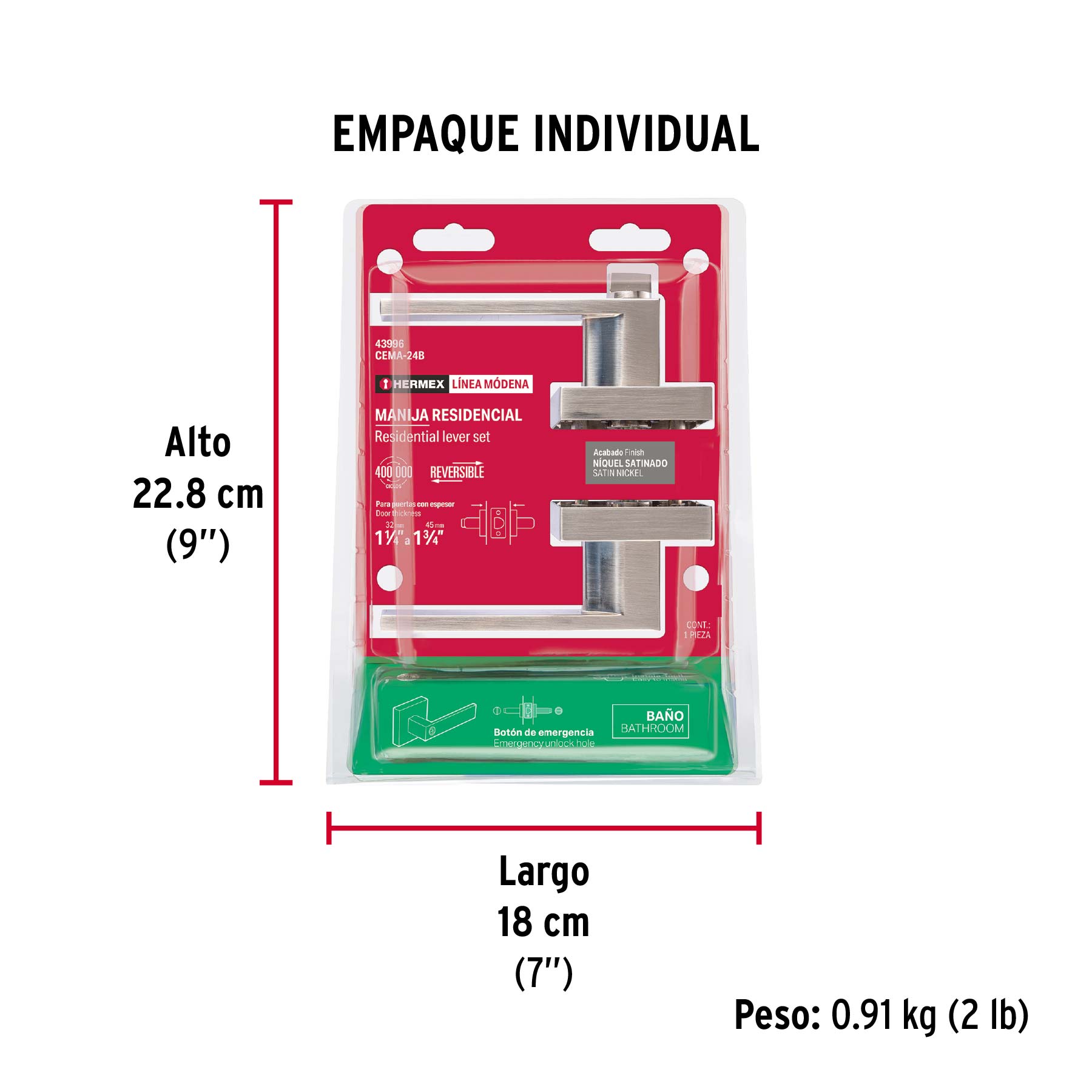 Espesor de puerta | 1-1/4" a 1-3/4" (32 a 45 mm) |