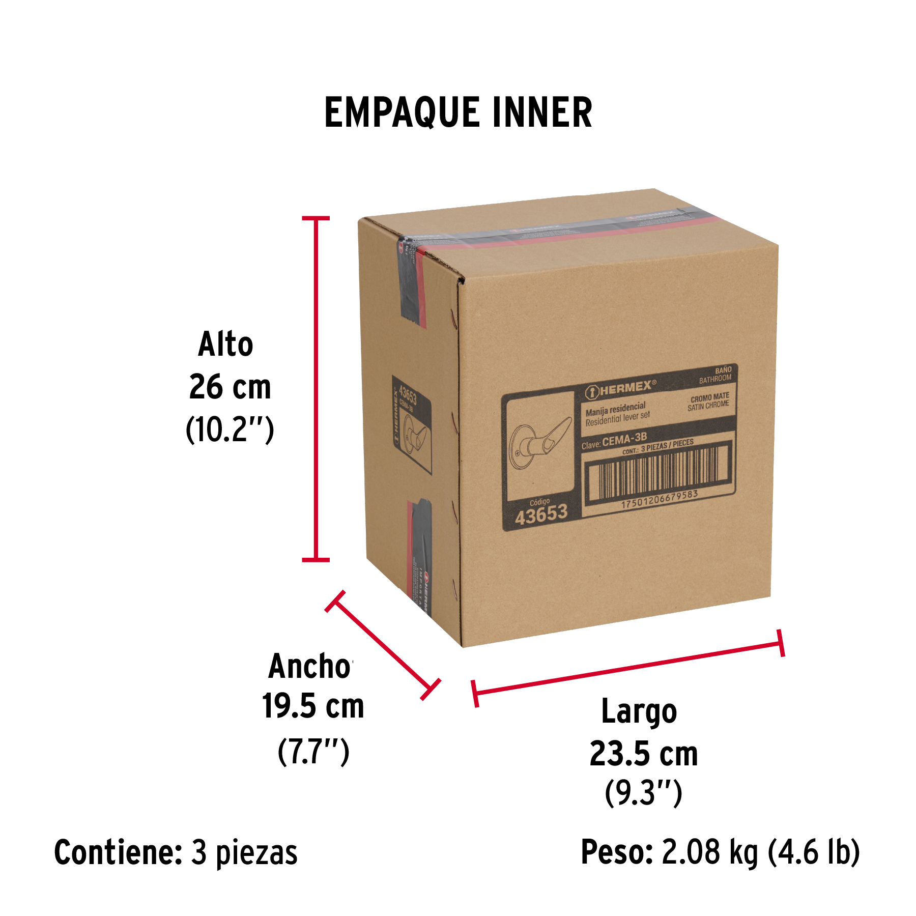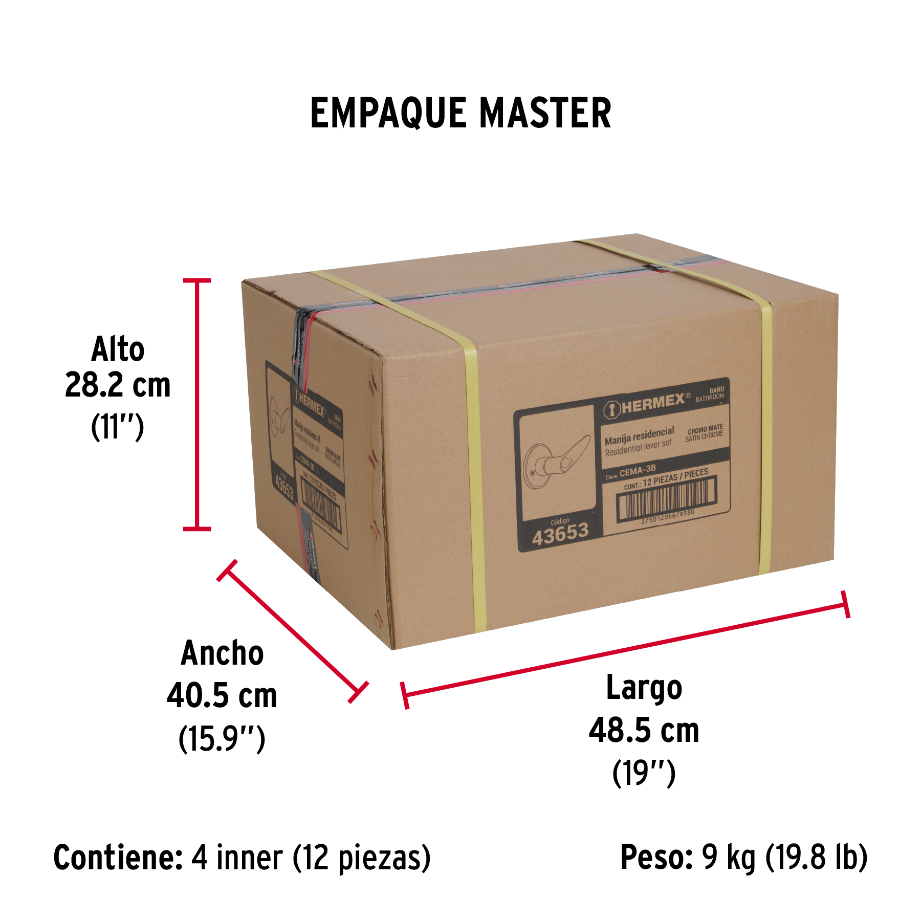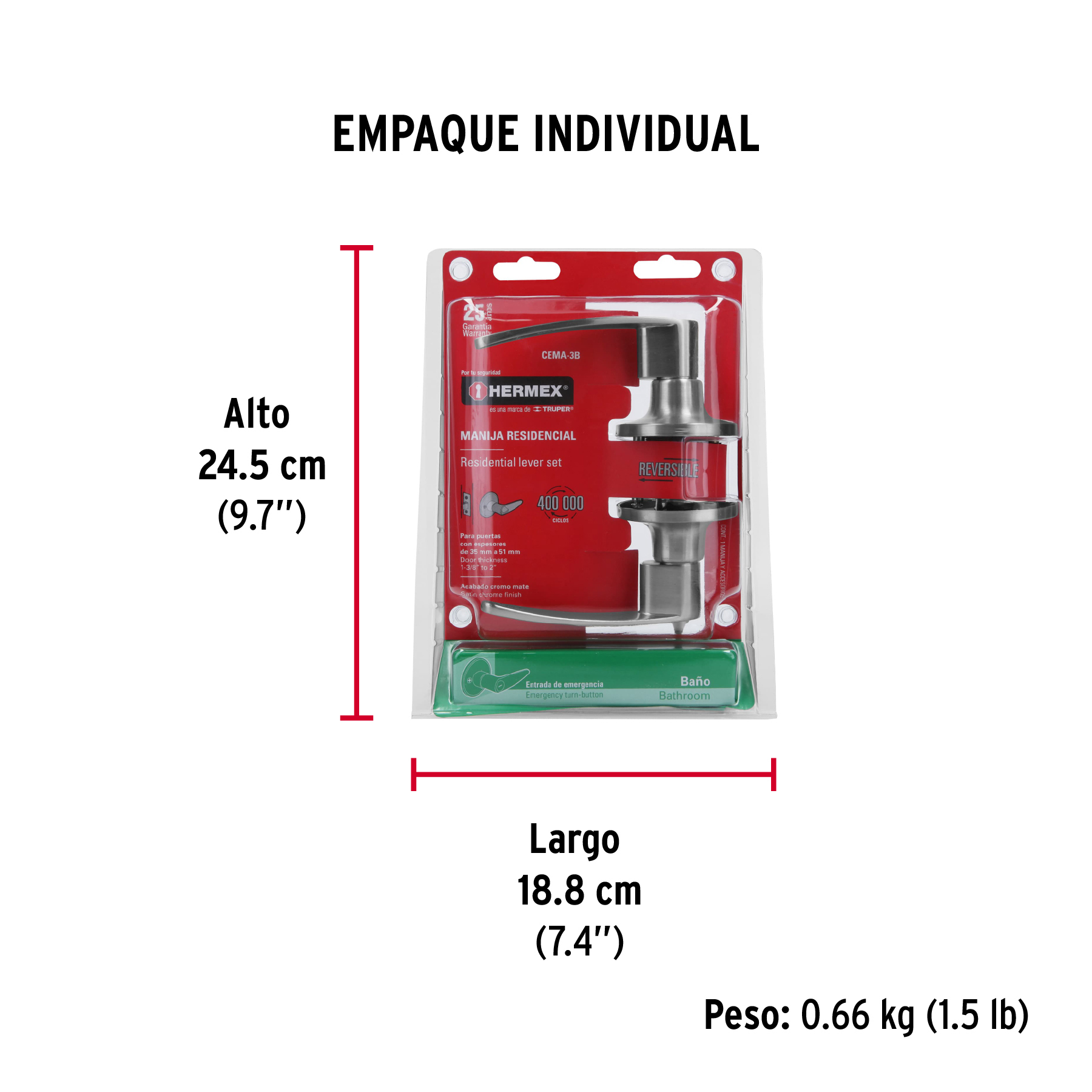 Manija reversible para colocación en puertas derechas o izquierdas de 1-1/4" a 1-3/4" (32 a 45 mm)