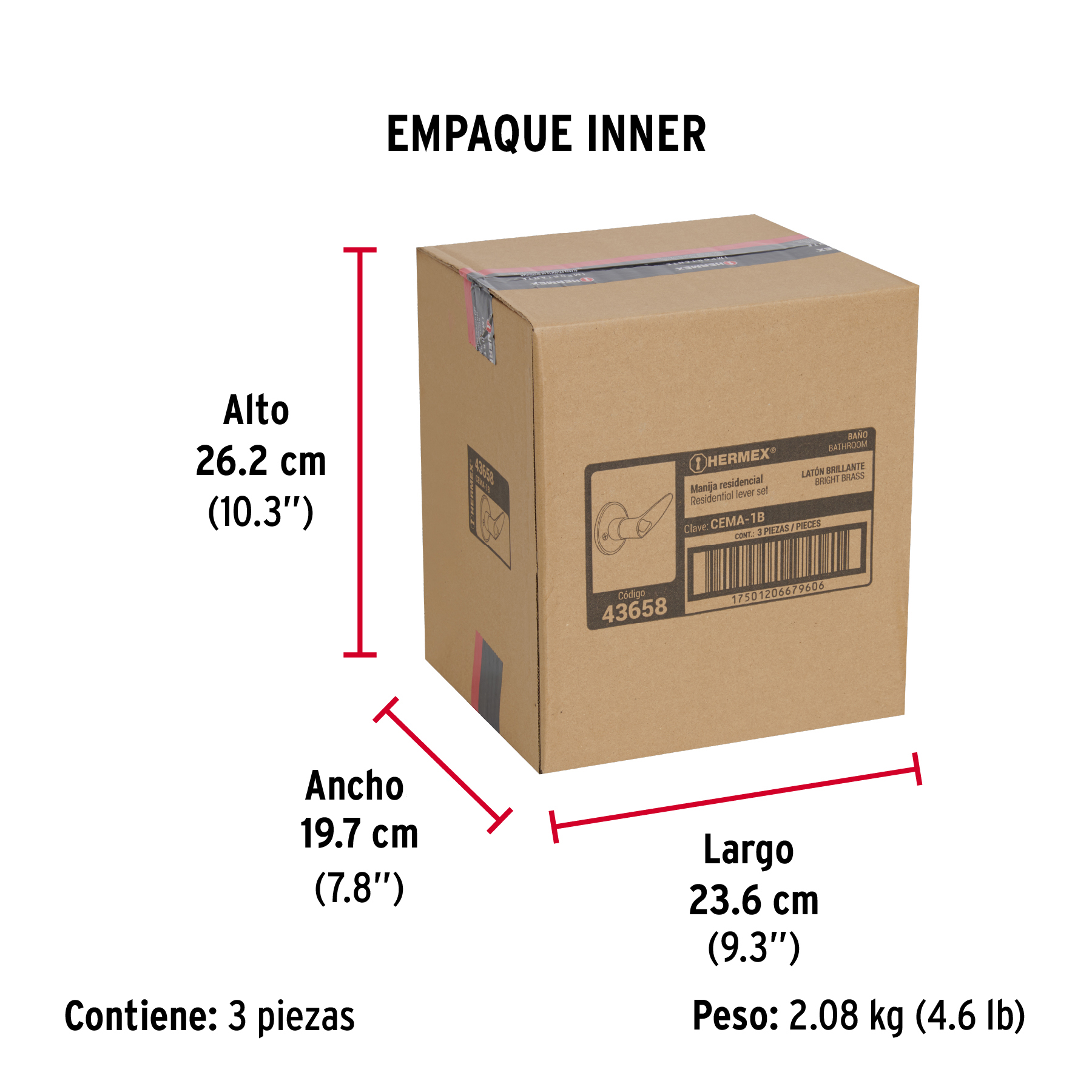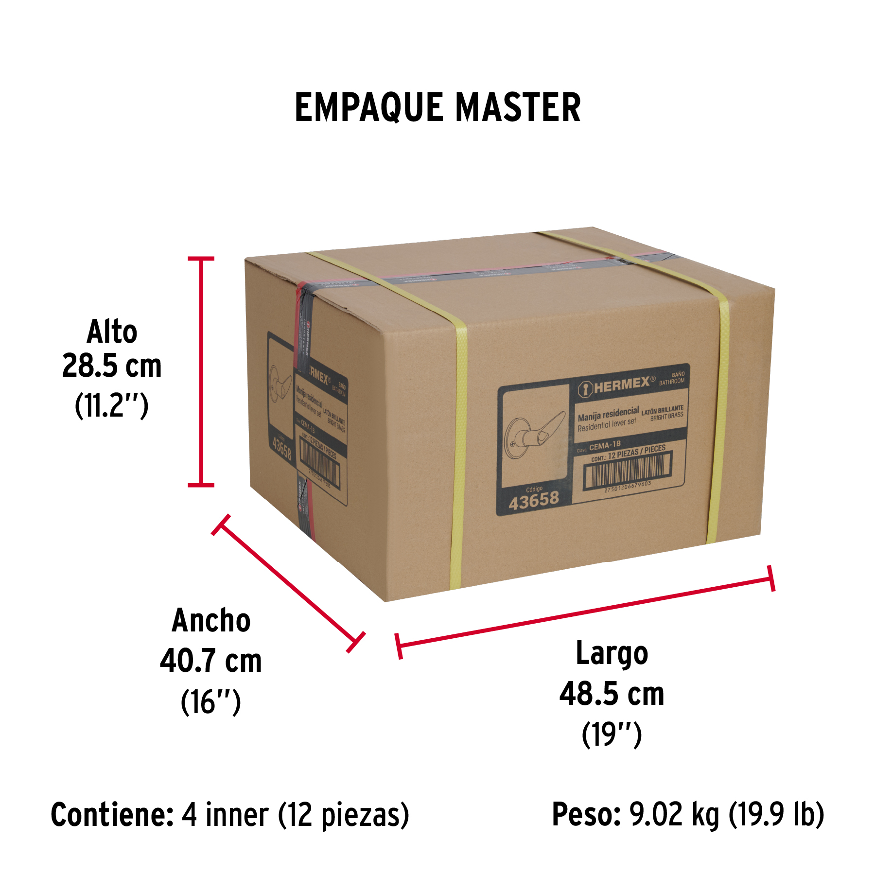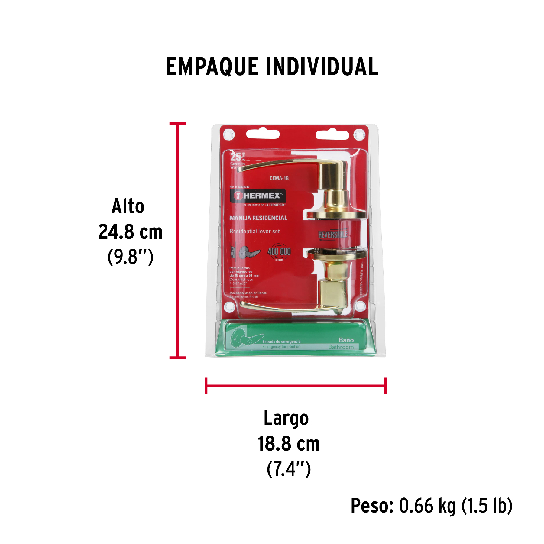 Manija reversible para colocación en puertas derechas o izquierdas de 1-1/4" a 1-3/4" (32 a 45 mm)