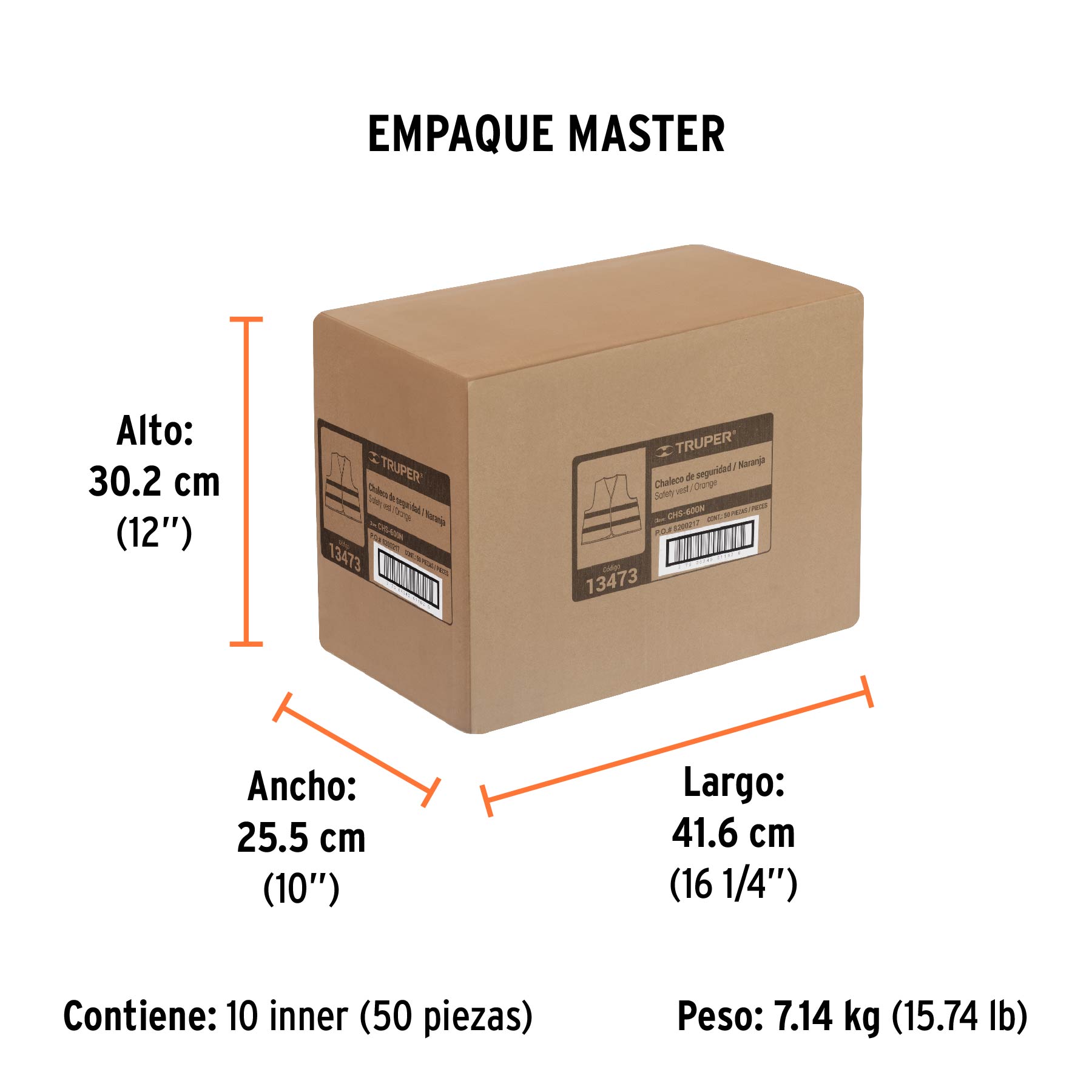 Chaleco de seguridad naranja alta visibilidad con cierre
