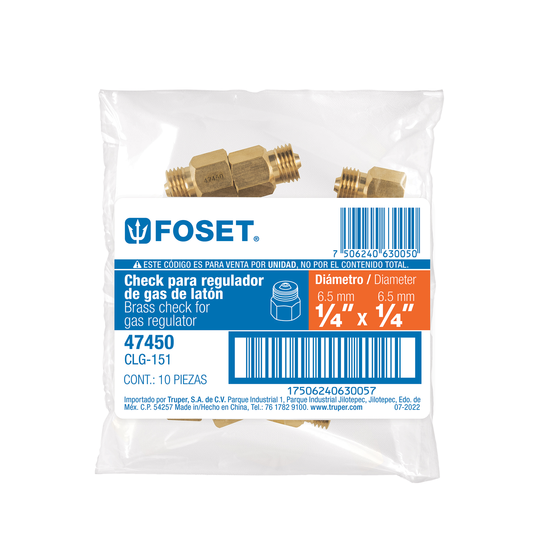 Check para regulador de 1/4" X 1/4" para gas, FOSET