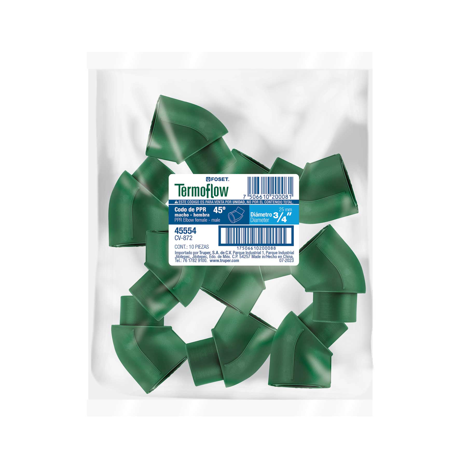 Codo 45° de PPR, 3/4" (25mm), macho-hembra, FOSET