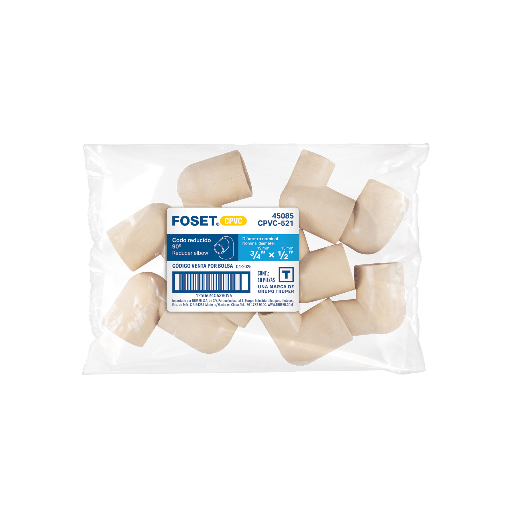 Codo reducción 90° de CPVC de 3/4" x 1/2", FOSET