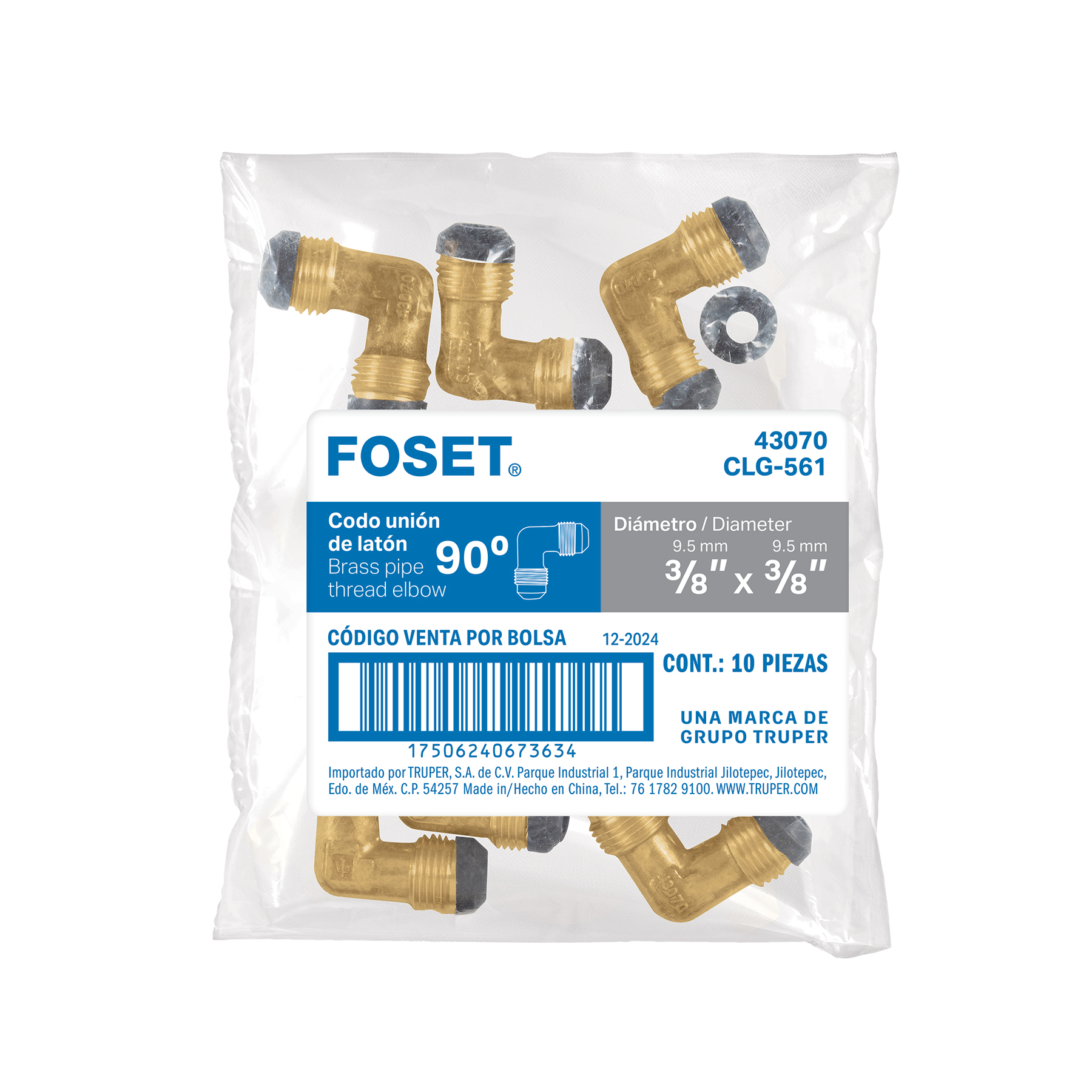 Codo unión a 90° de latón de 3/8 x 3/8", FOSET