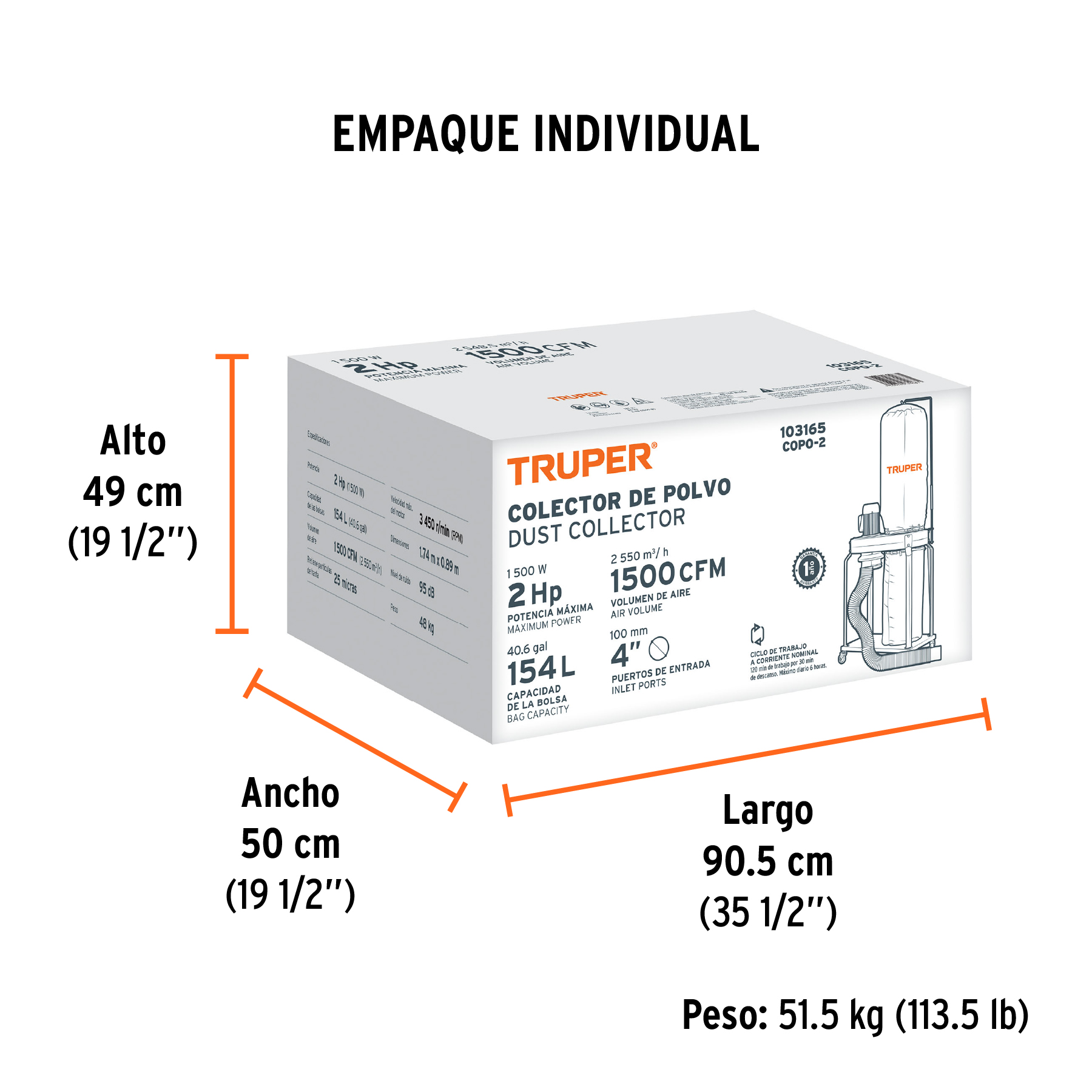 Ideal para capturar polvo generado por las máquinas de trabajo con madera (sierras de mesa, canteadoras, cepillos de piso y sierras cintas)