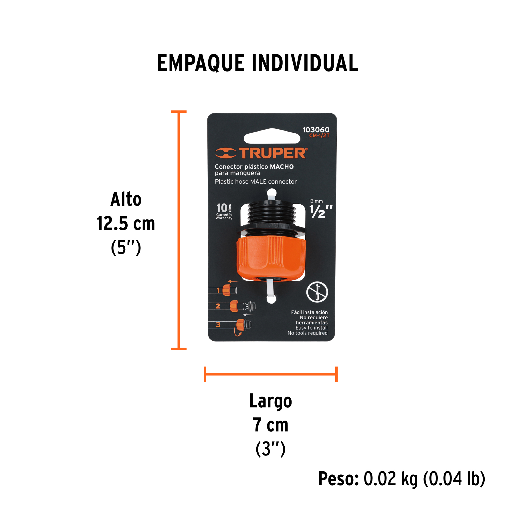 Conector 1/2" macho de ABS con tuerca de ajuste manual