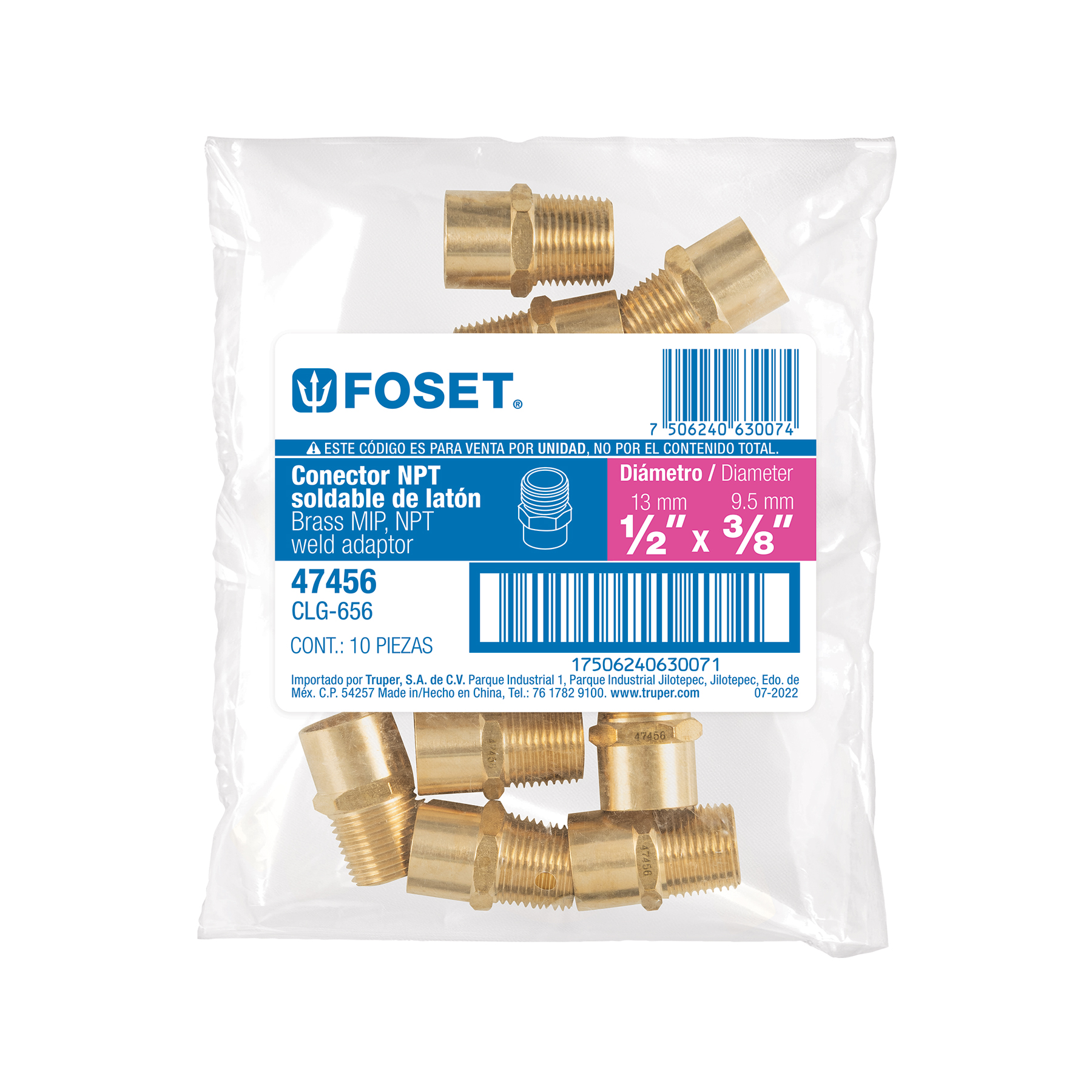 Conector NPT soldable de latón, 1/2" X 3/8", FOSET
