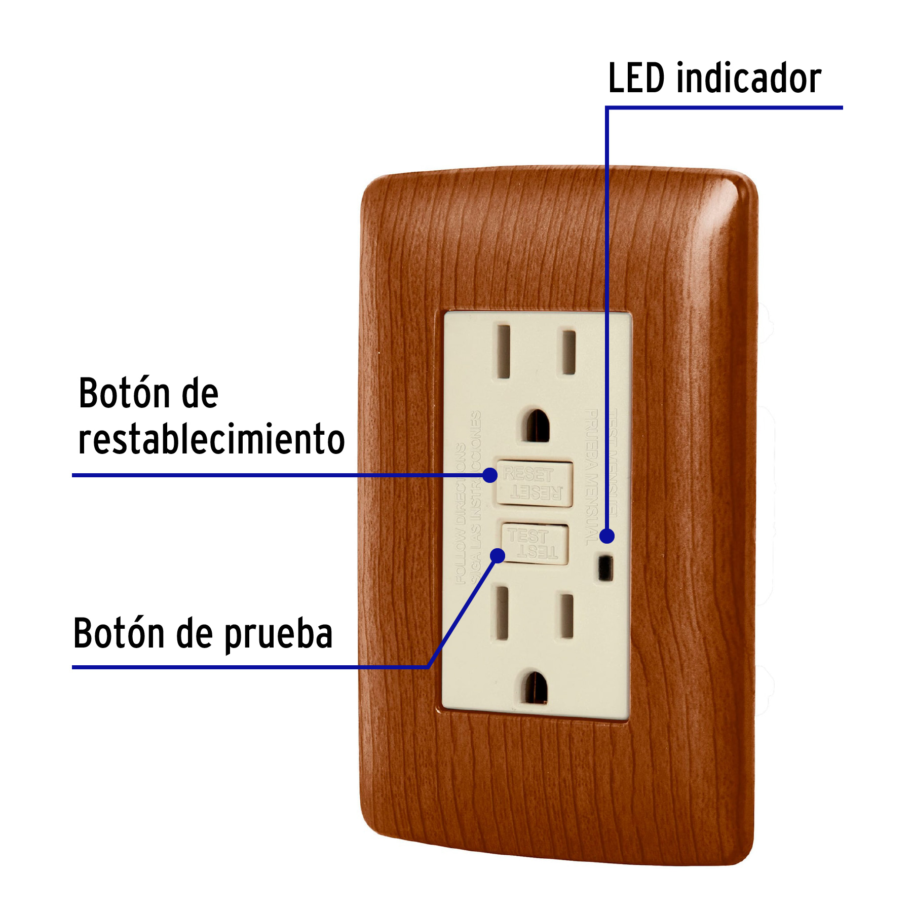 Contacto dúplex falla a tierra GFCI, madera, línea Italiana