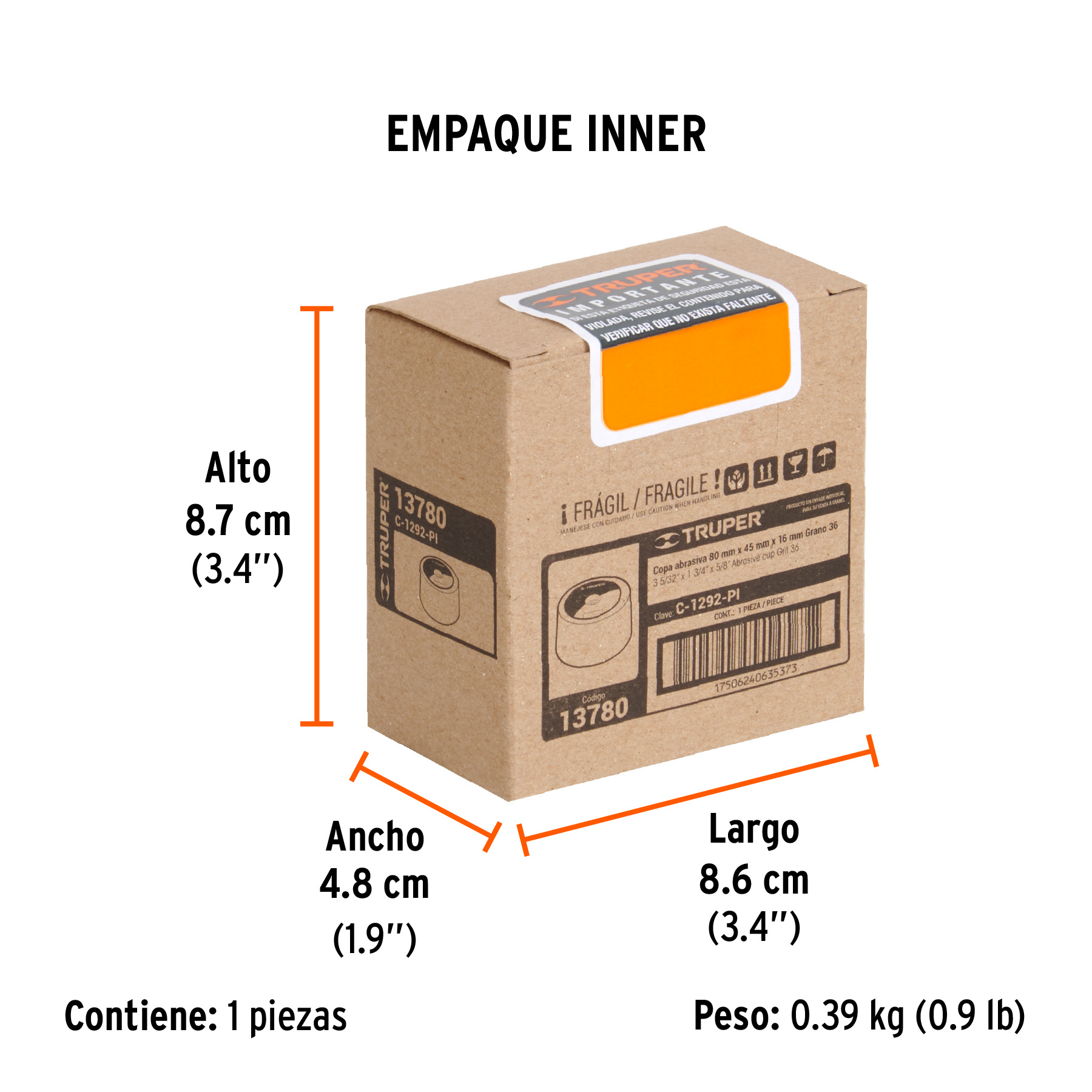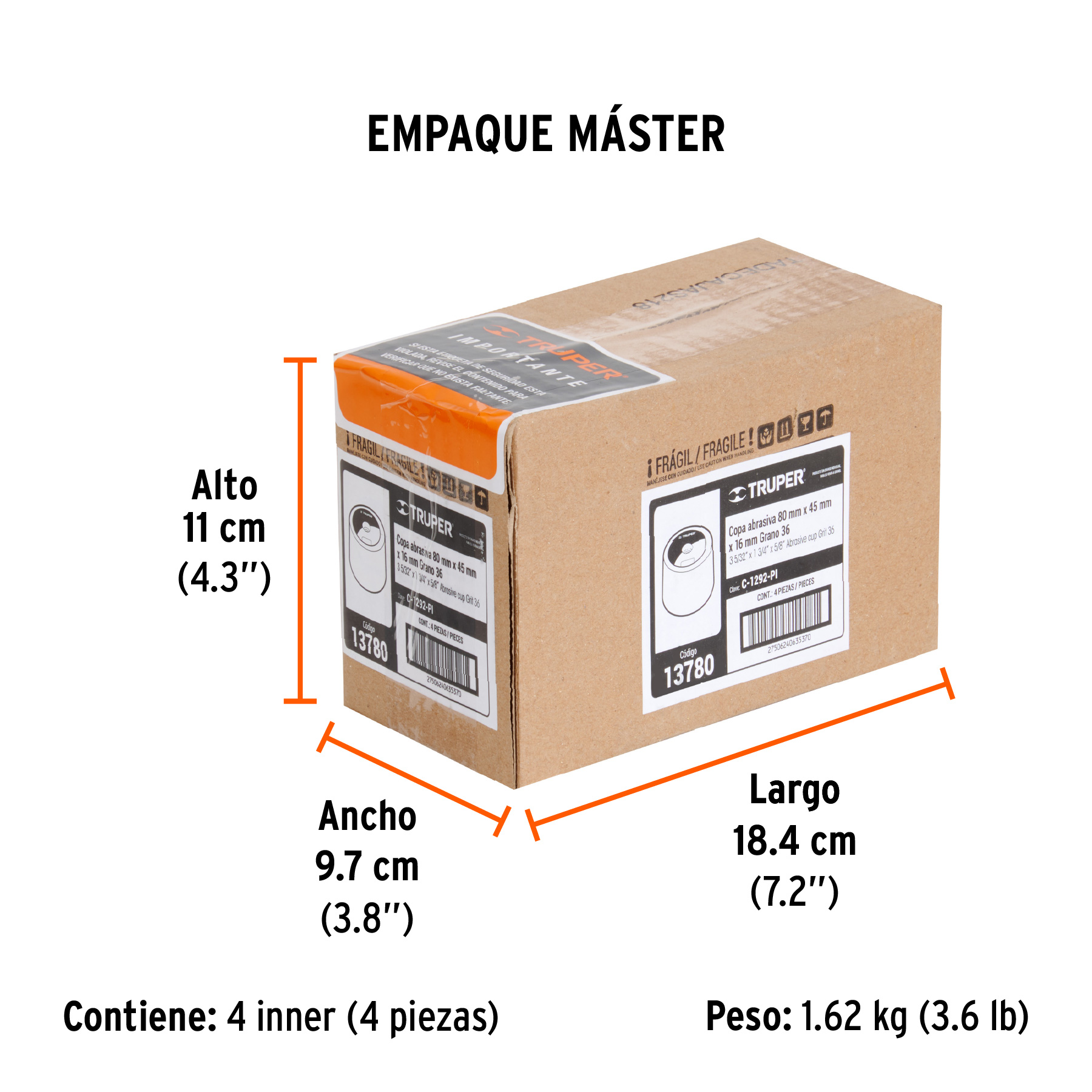 Copa desbaste de piedra 3-5/32" grano 36, eje 5/8-11, TRUPER