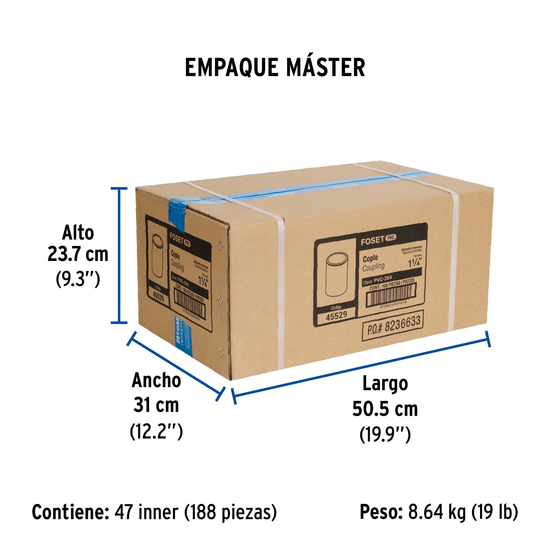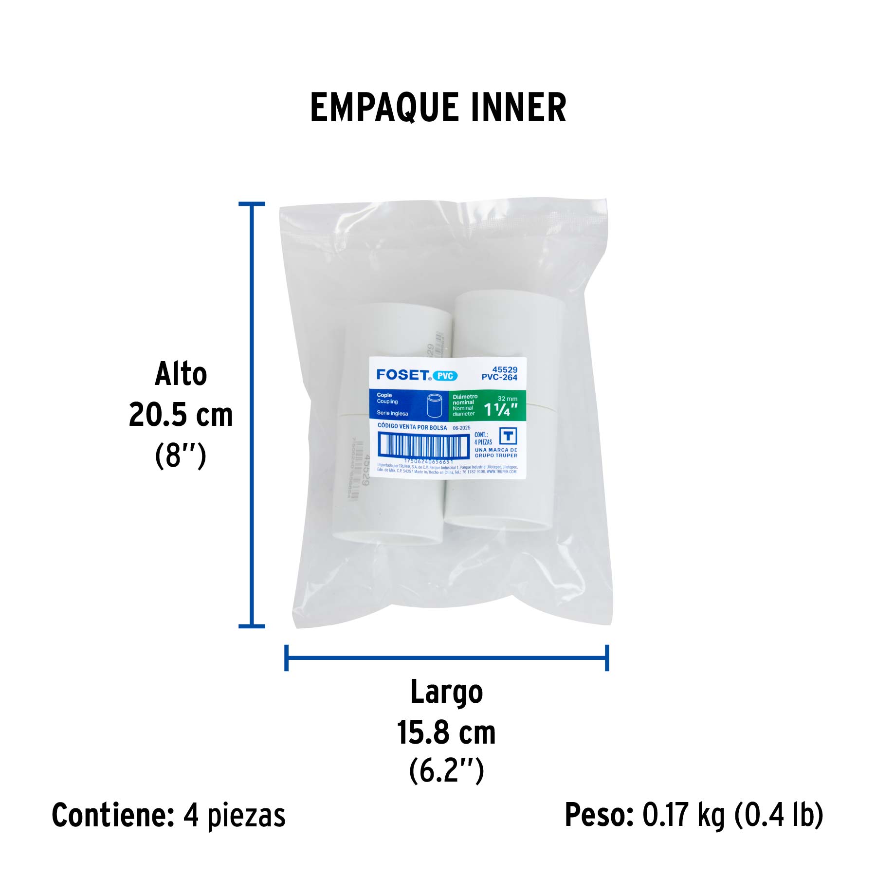 Cople de PVC cédula 40 de 1-1/4", FOSET