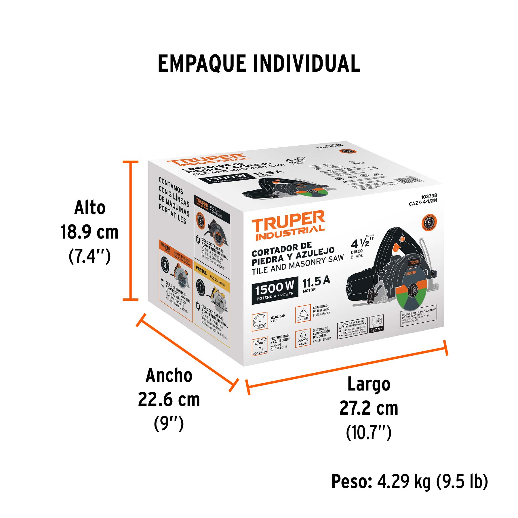 Cortadora para azulejos, 4-1/2", 1500W, TRUPER INDUSTRIAL