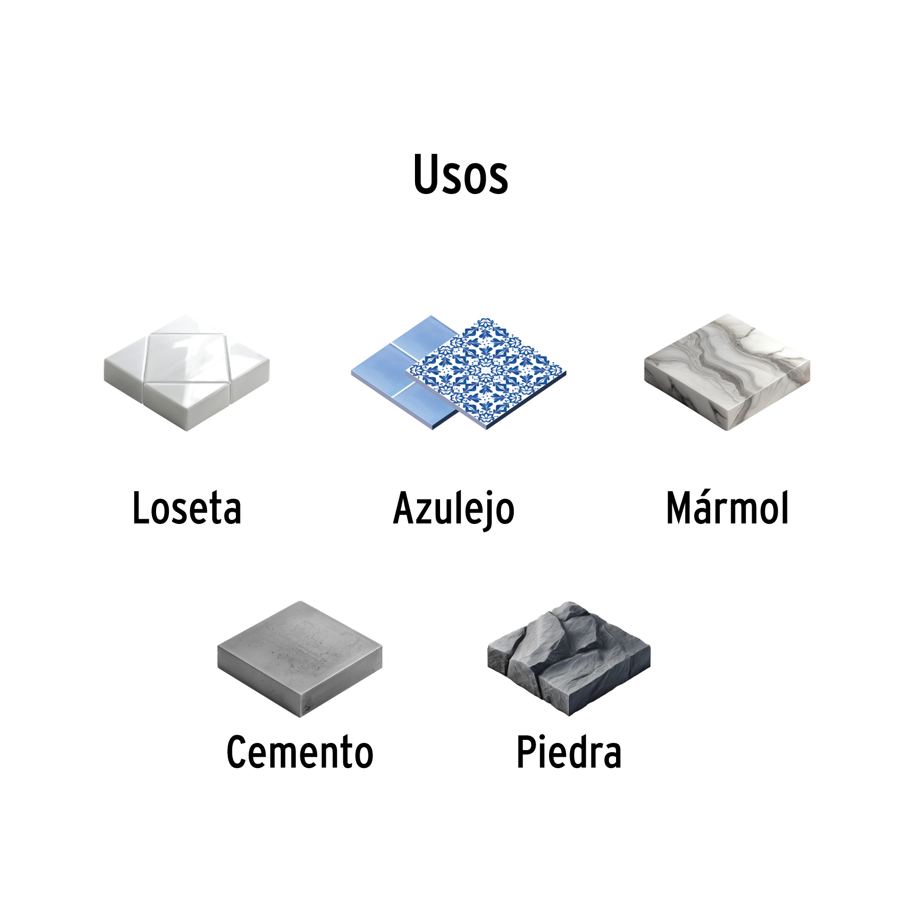 Cerámica 1 3/16" (30 mm), cemento 3/4" (19 mm) y azulejo 1" (25 mm)