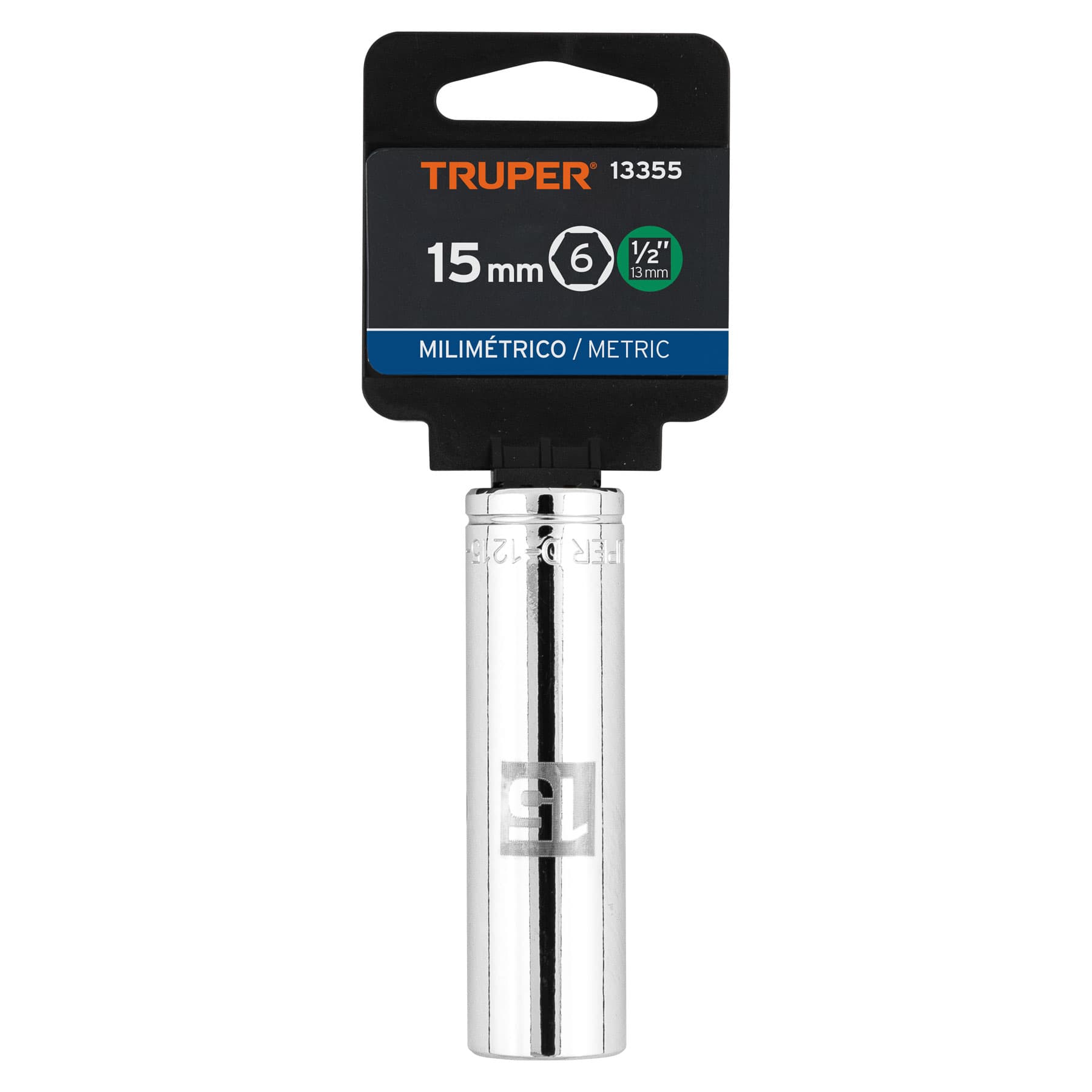 Dado largo de 15 mm, 6 puntas, cuadro 1/2", TRUPER