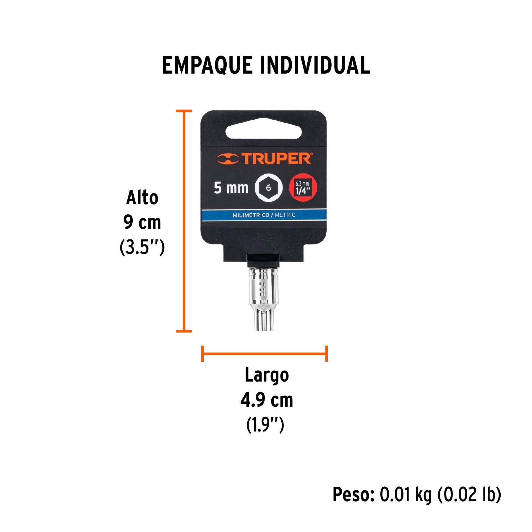 Dado de 5 mm, 6 puntas, cuadro 1/4", TRUPER