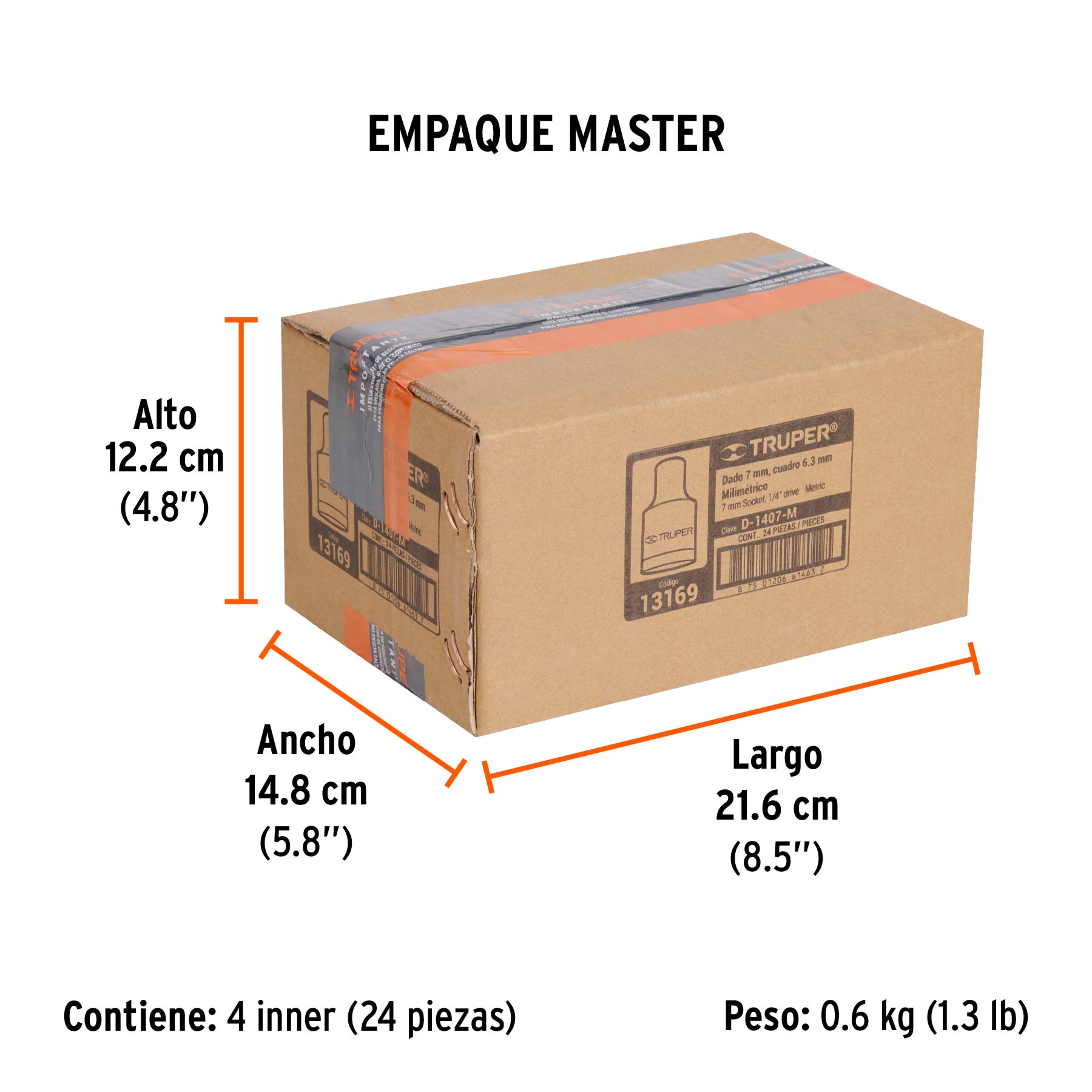 Dado de 7 mm, 6 puntas, cuadro 1/4", TRUPER