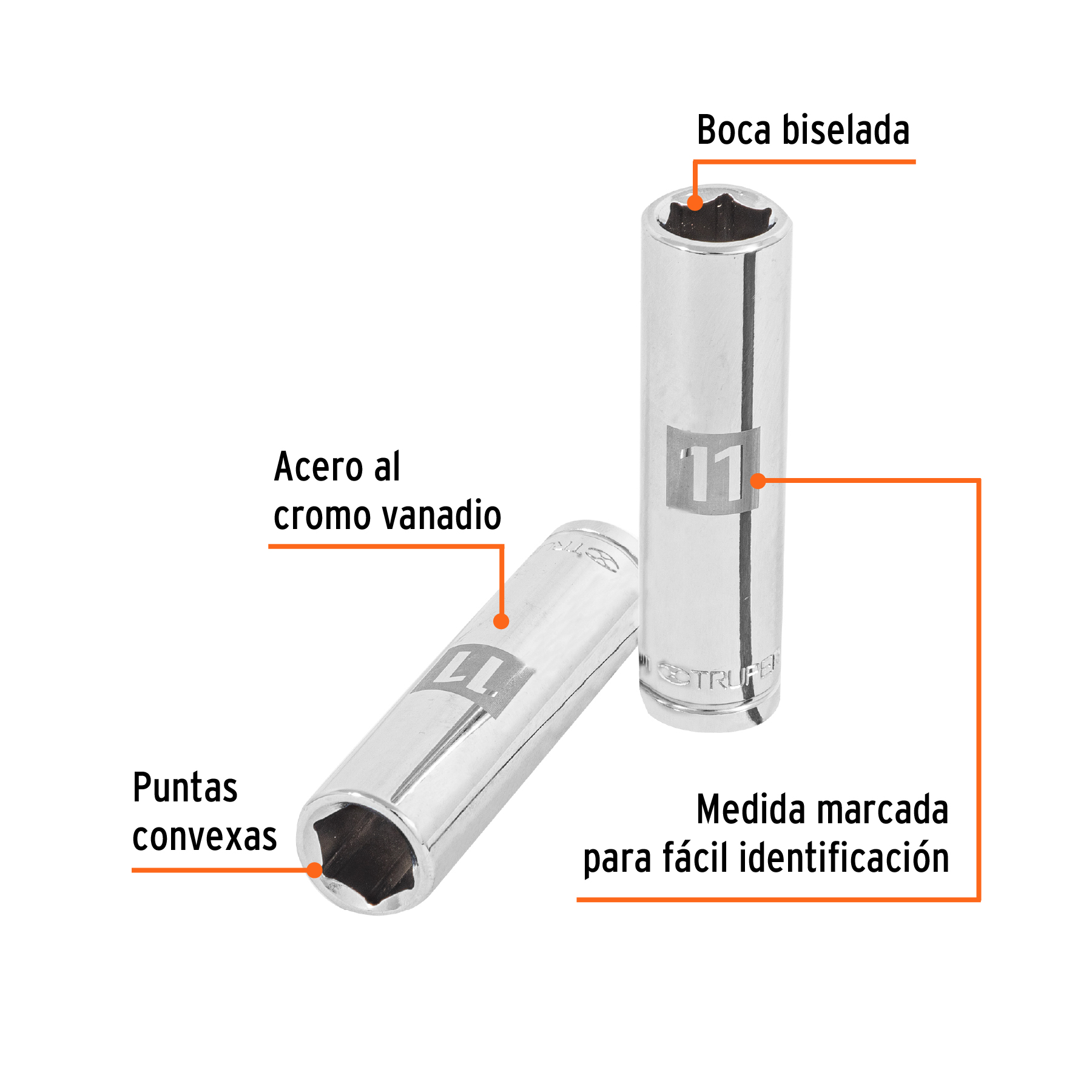 Dado largo de 11 mm, 6 puntas, cuadro 3/8", TRUPER