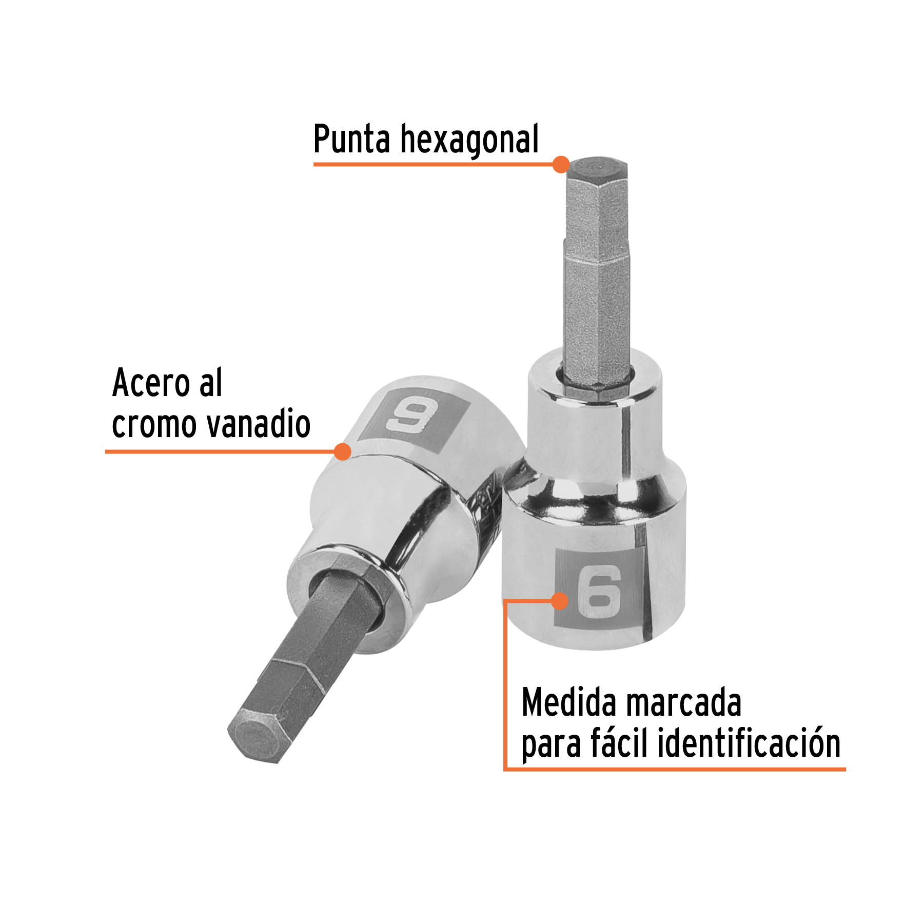 Dado punta hexagonal de 6 mm, cuadro 3/8", TRUPER
