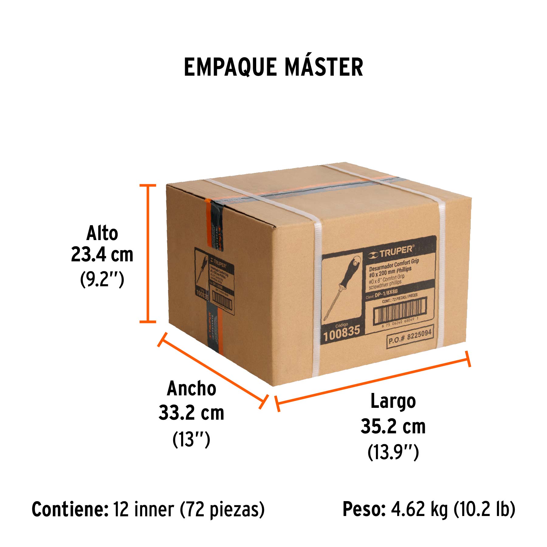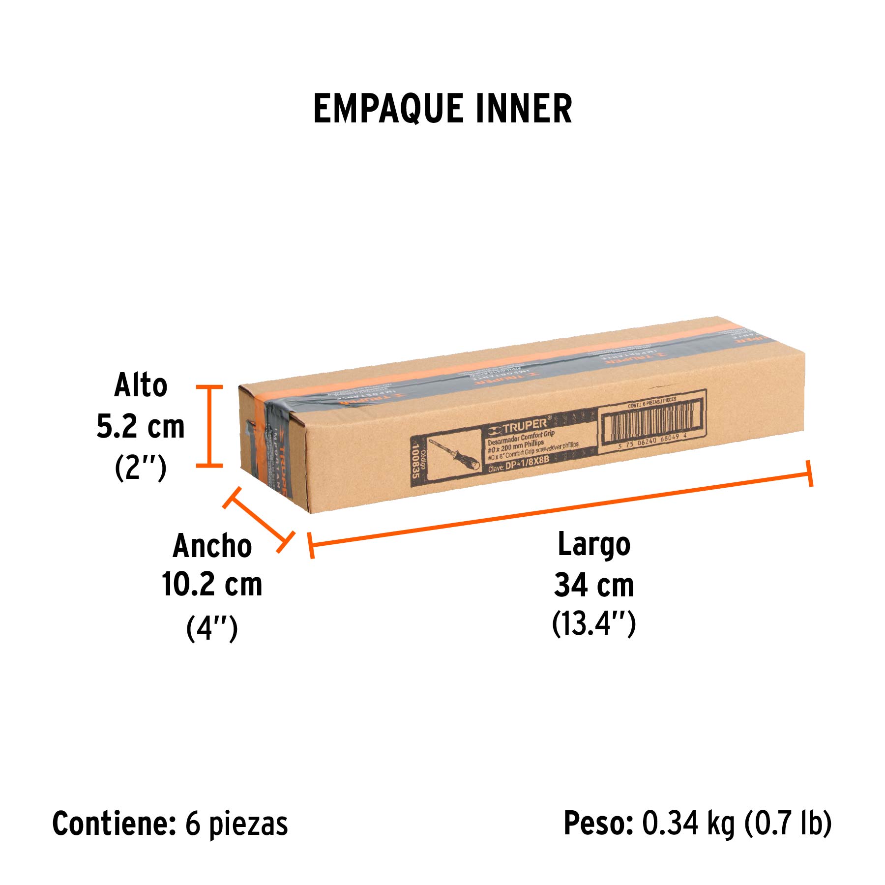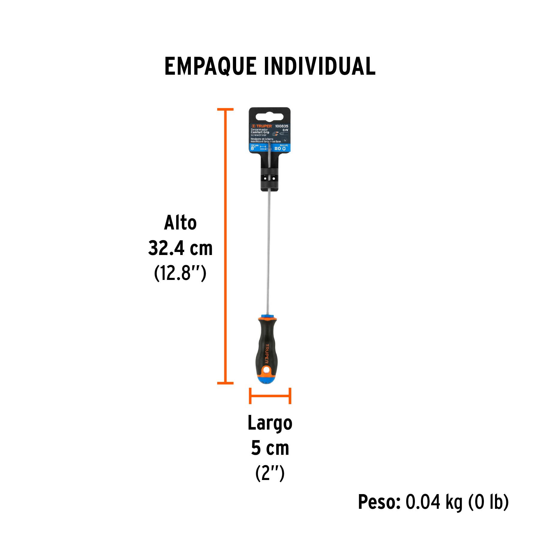 Desarmador de cruz 1/8" x 8" mango Comfort Grip, TRUPER