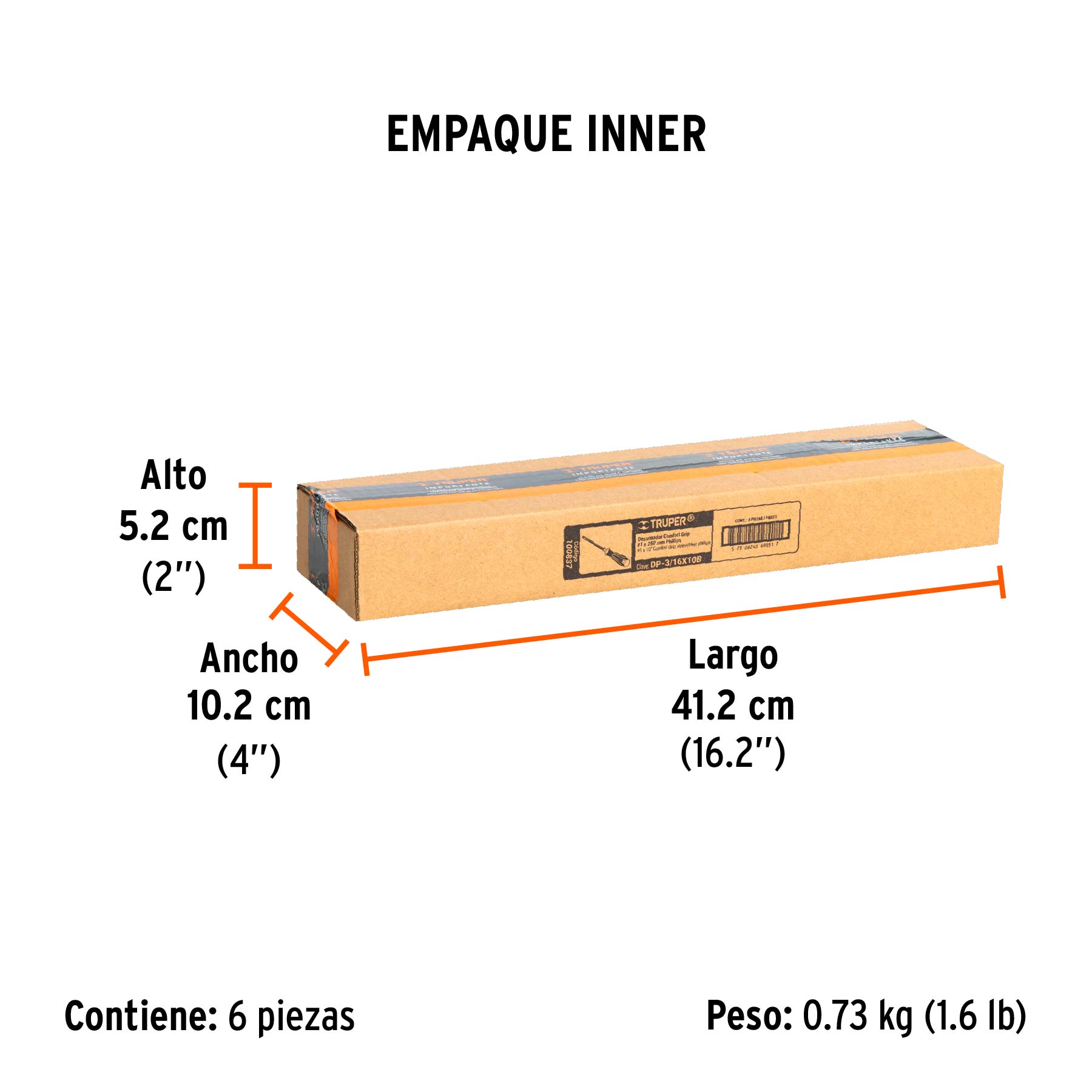 Medida (punta x largo de barra) | 3/16" x 10" |