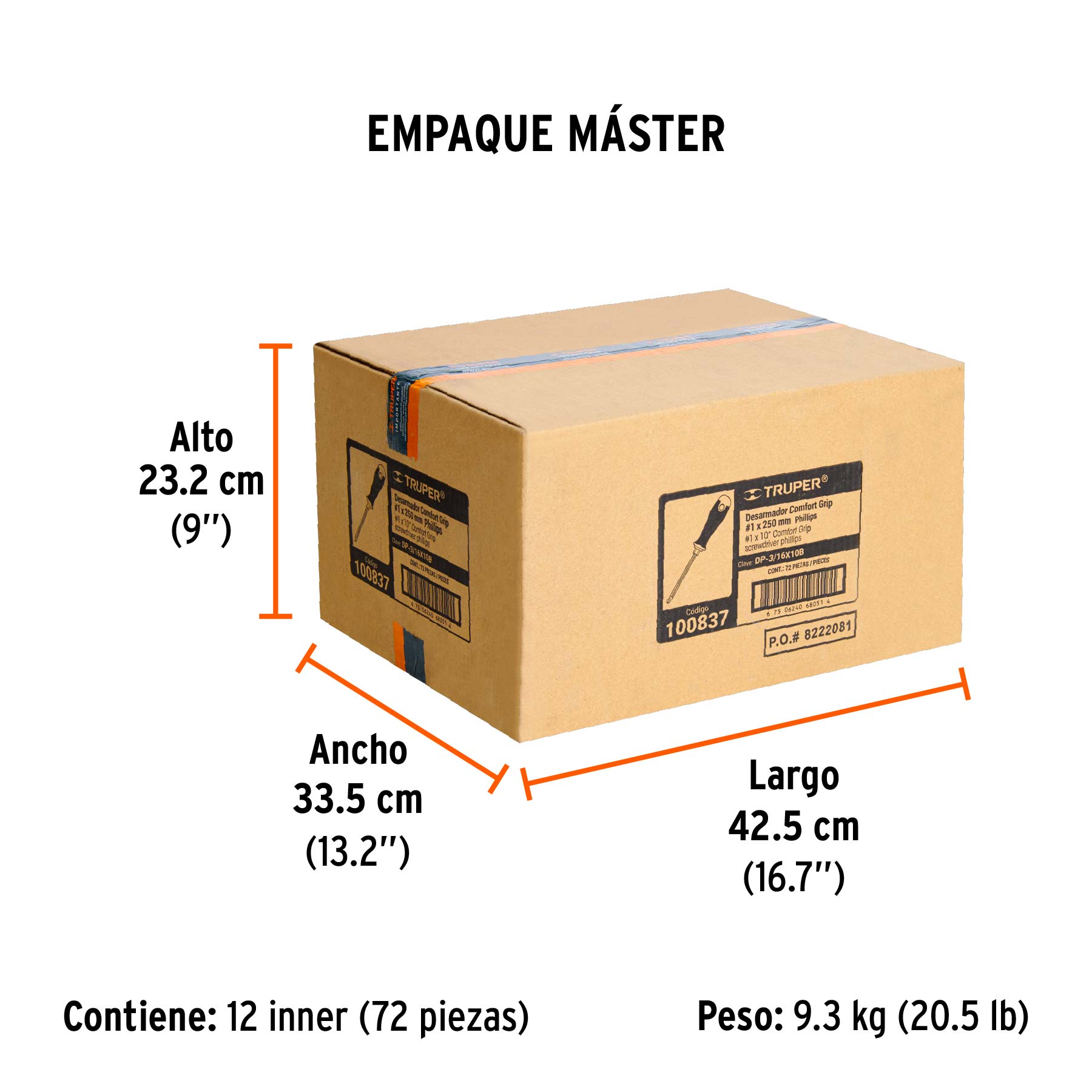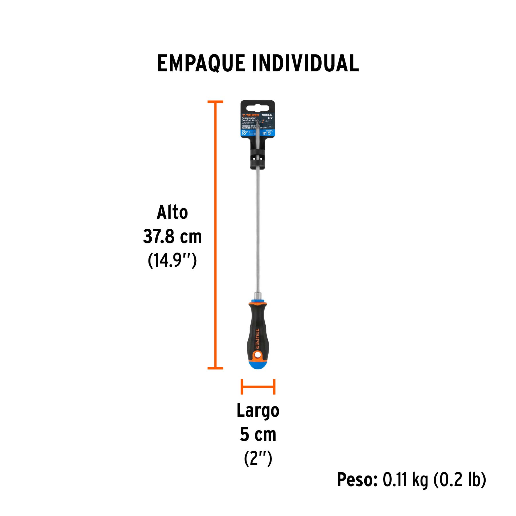 Desarmador de cruz 3/16" x 10" mango Comfort Grip, TRUPER