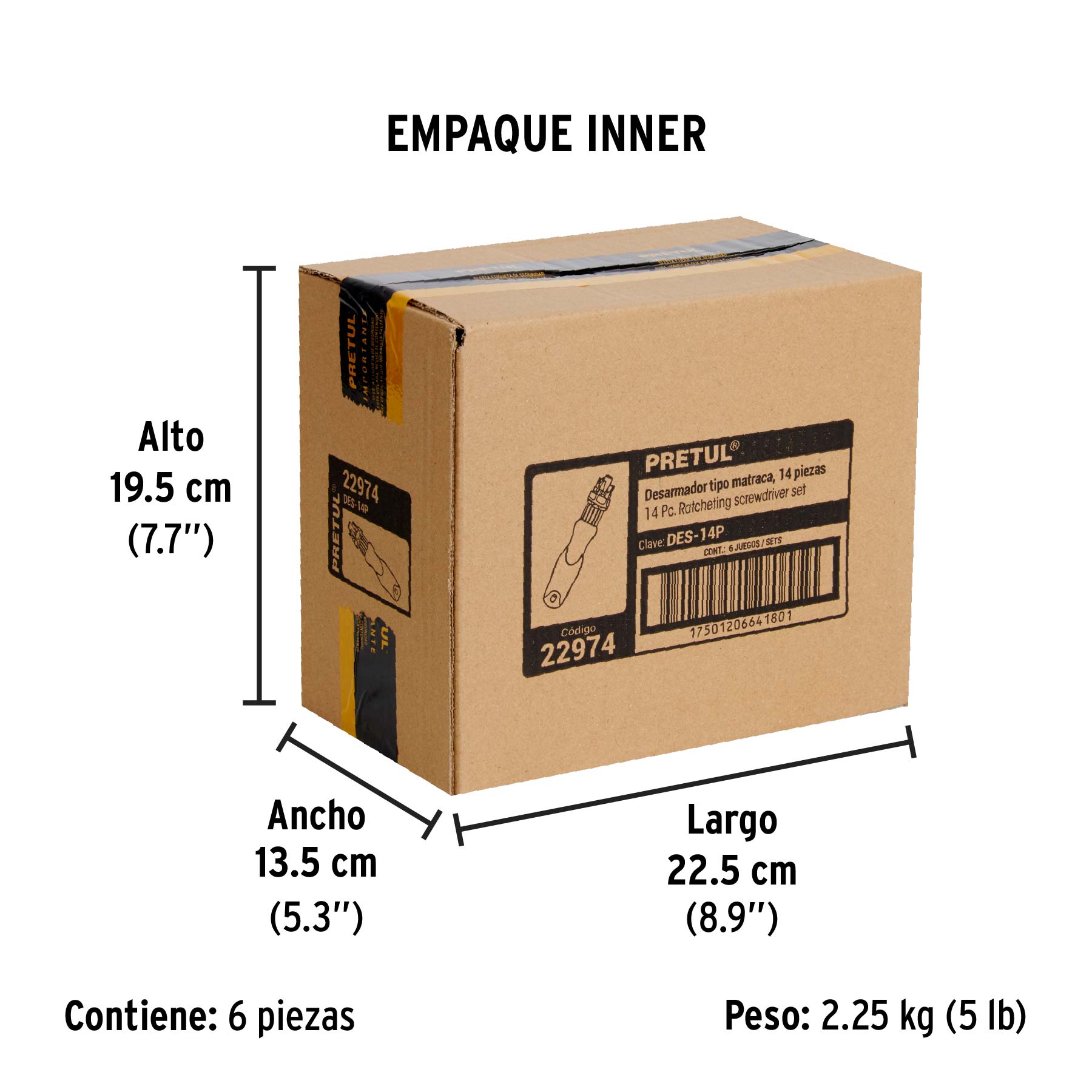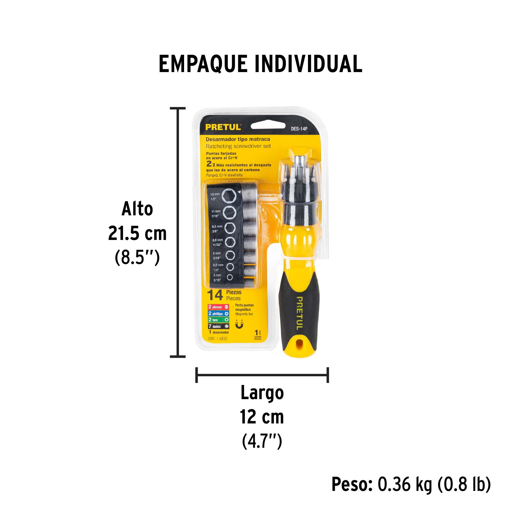 Desarmador tipo matraca con 6 puntas y 7 dados, PRETUL