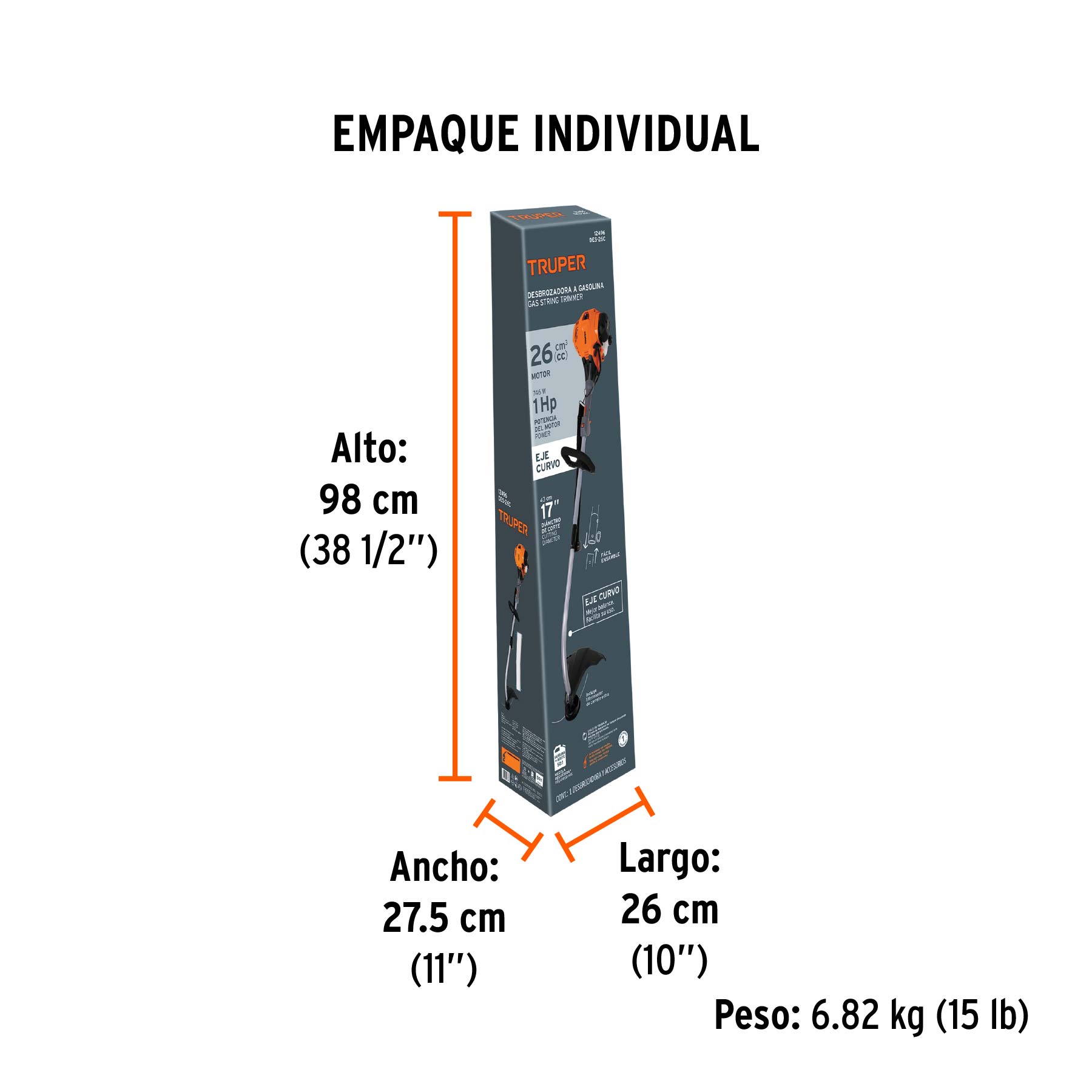 Desbrozadora a gasolina 26cc mango tipo "D", 17"corte, curva
